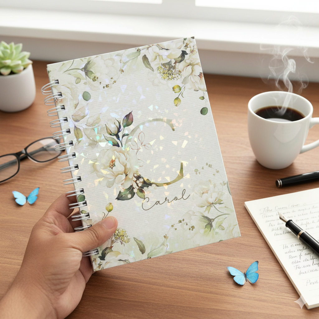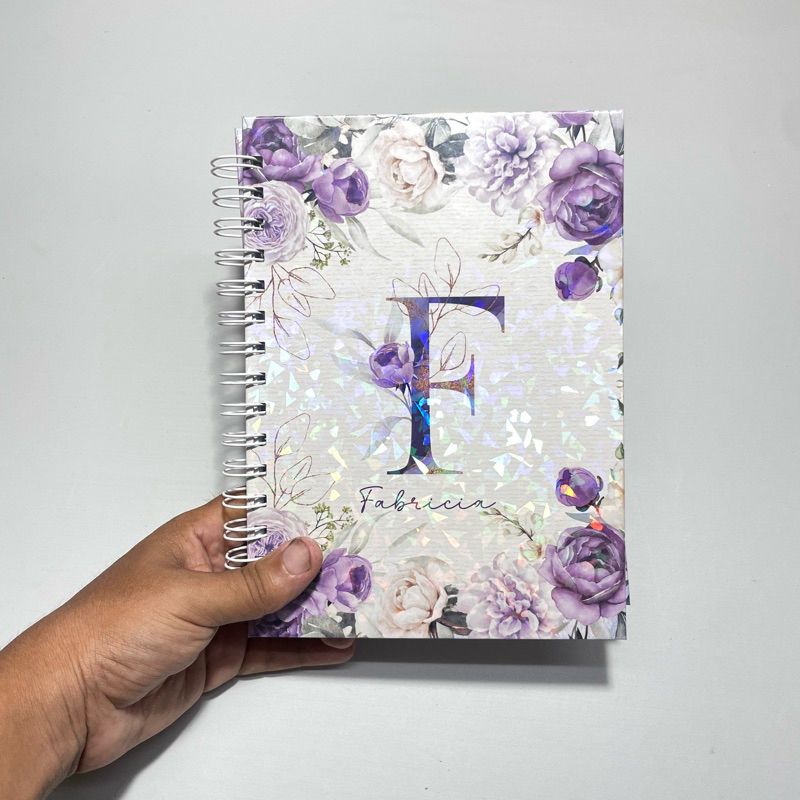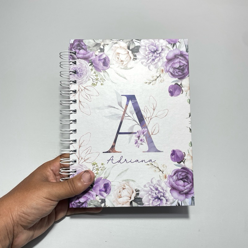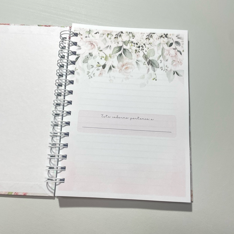 Caderno Personalizado Floral com Nome | Capa Fosca ou Holográfica | 200 ou 400 Págs | Miolo Decorado