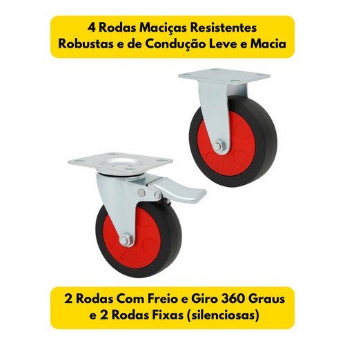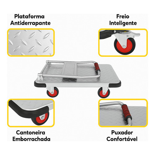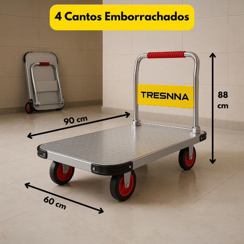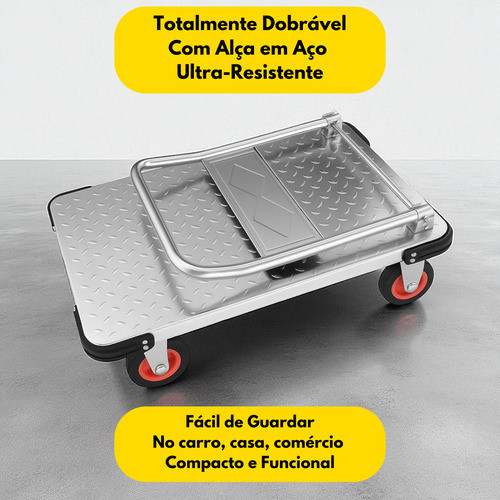 Carrinho Dobrável Em Aço Reforçado Tresnna Prateado 550kg com Freio.