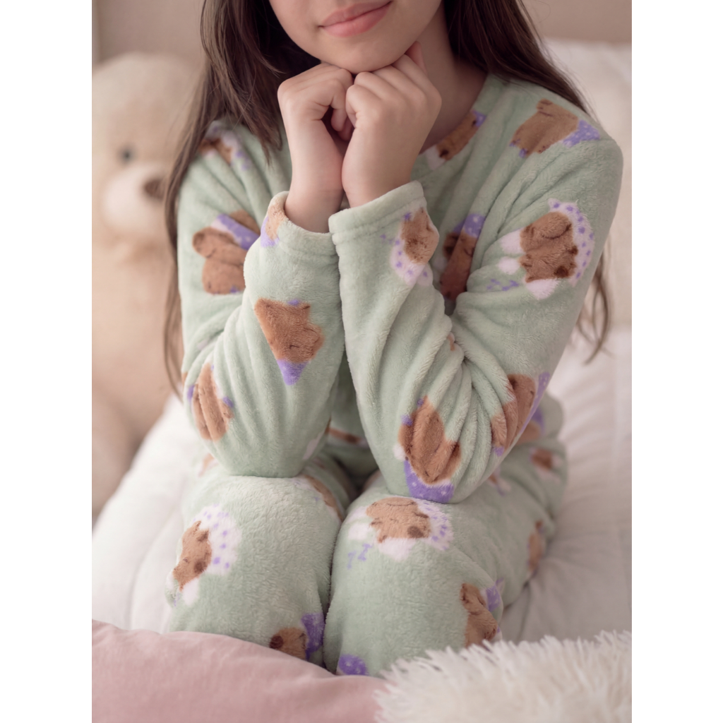 Pijama Infantil Fleece Peludinho Ted – Quentinho, Fofinho e Perfeito para Inverno Fechado