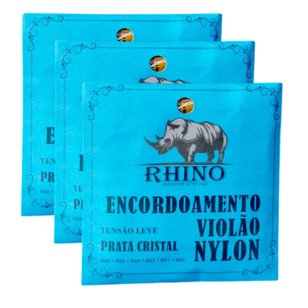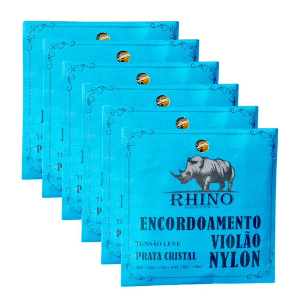 Encordoamento jogo de cordas Violão nylon Rhino tensao leve 6 cordas prata cristal