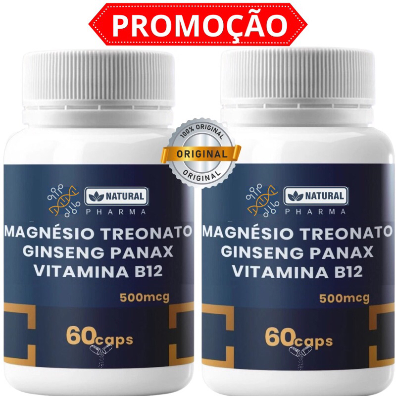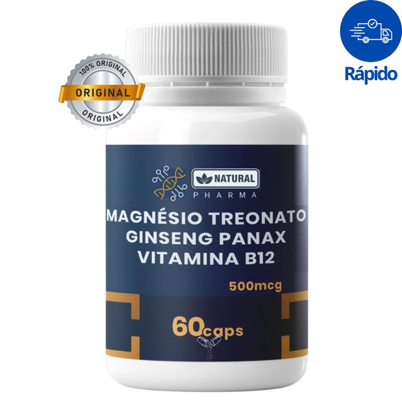 Magnésio Treonato 200mg + Ginseng Panax 100mg + Vitamina B12 Metilcobalamina 1000mcg