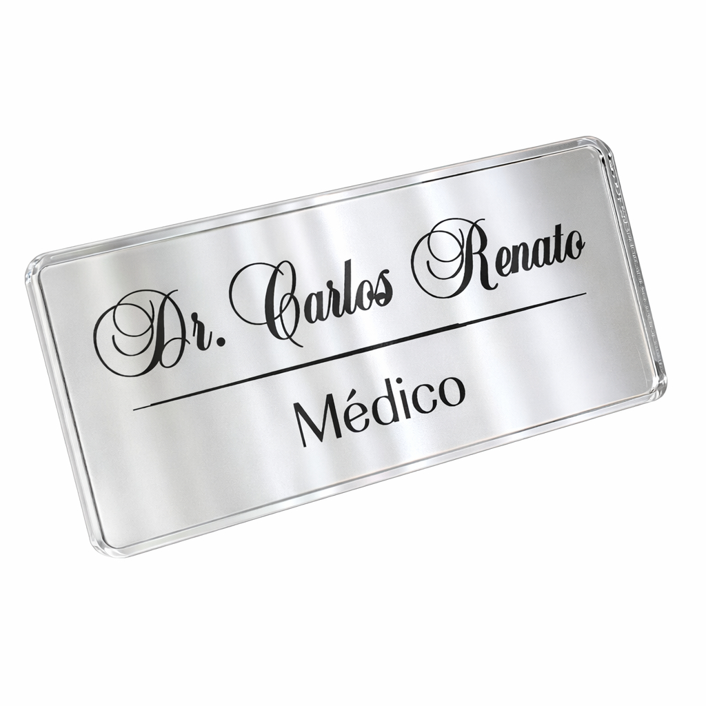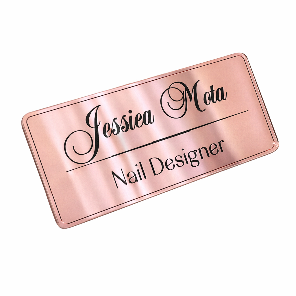 Broche com Nome e Profissão Personalizado Dourado Prata Rose para Jaleco Uniforme