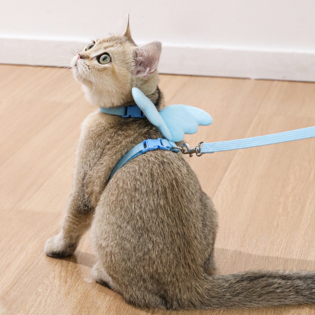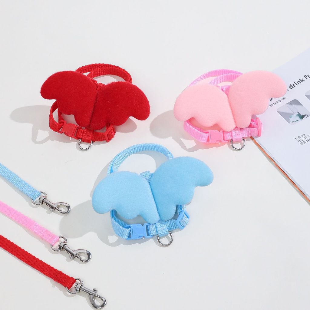 Coleira Peitoral Anjo para Gato Pet Colorido Ajustável com Guia e Asa 024-084