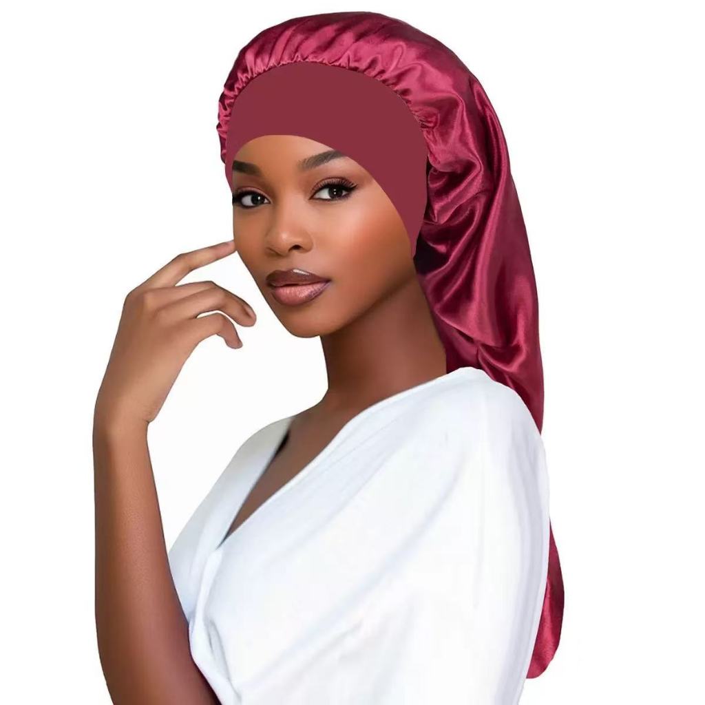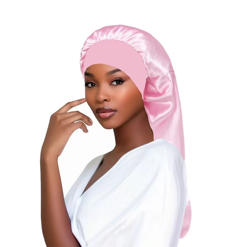 Touca de Cetim Longa com Faixa de Laço Toca Cetim Gigante para Cabelos Longos Box Braids