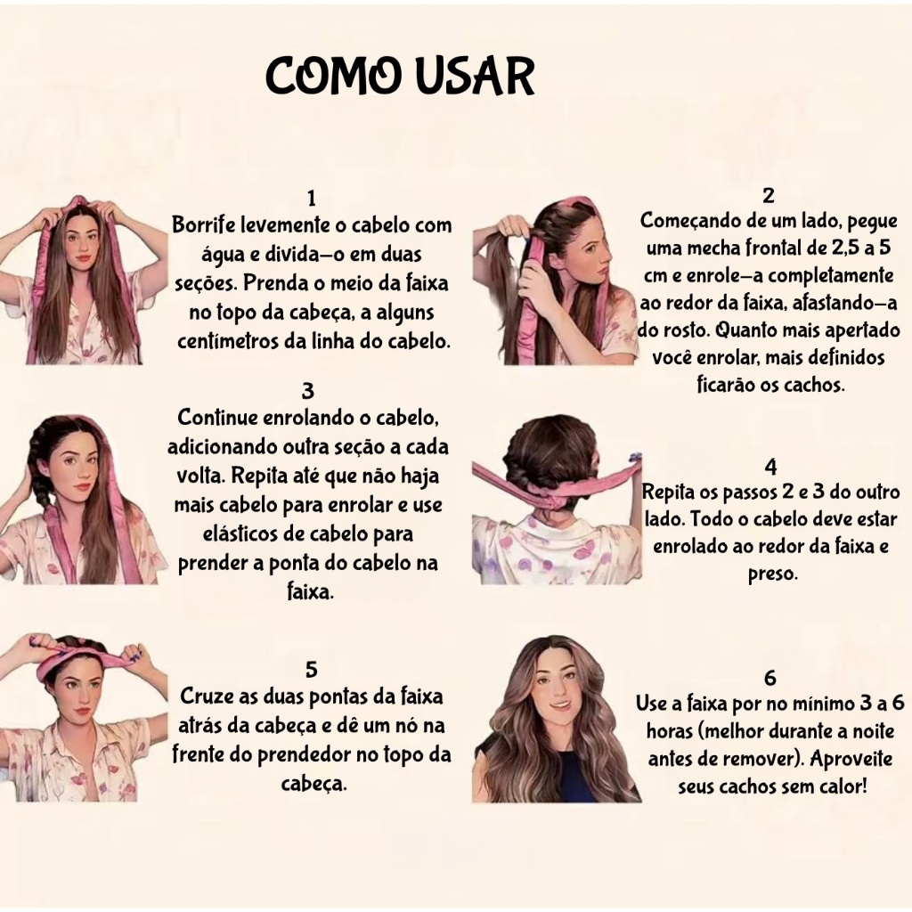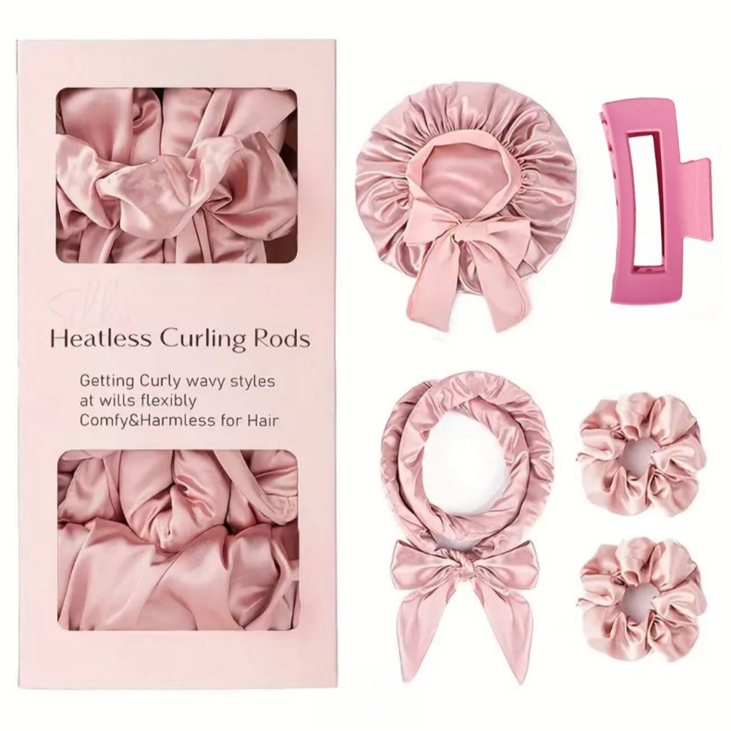 kit Modelador de Cachos Cetim Sem Calor+ touca de Cetim Dupla Face + 1Piranha +2 Scrunchies para cabelo 025-066