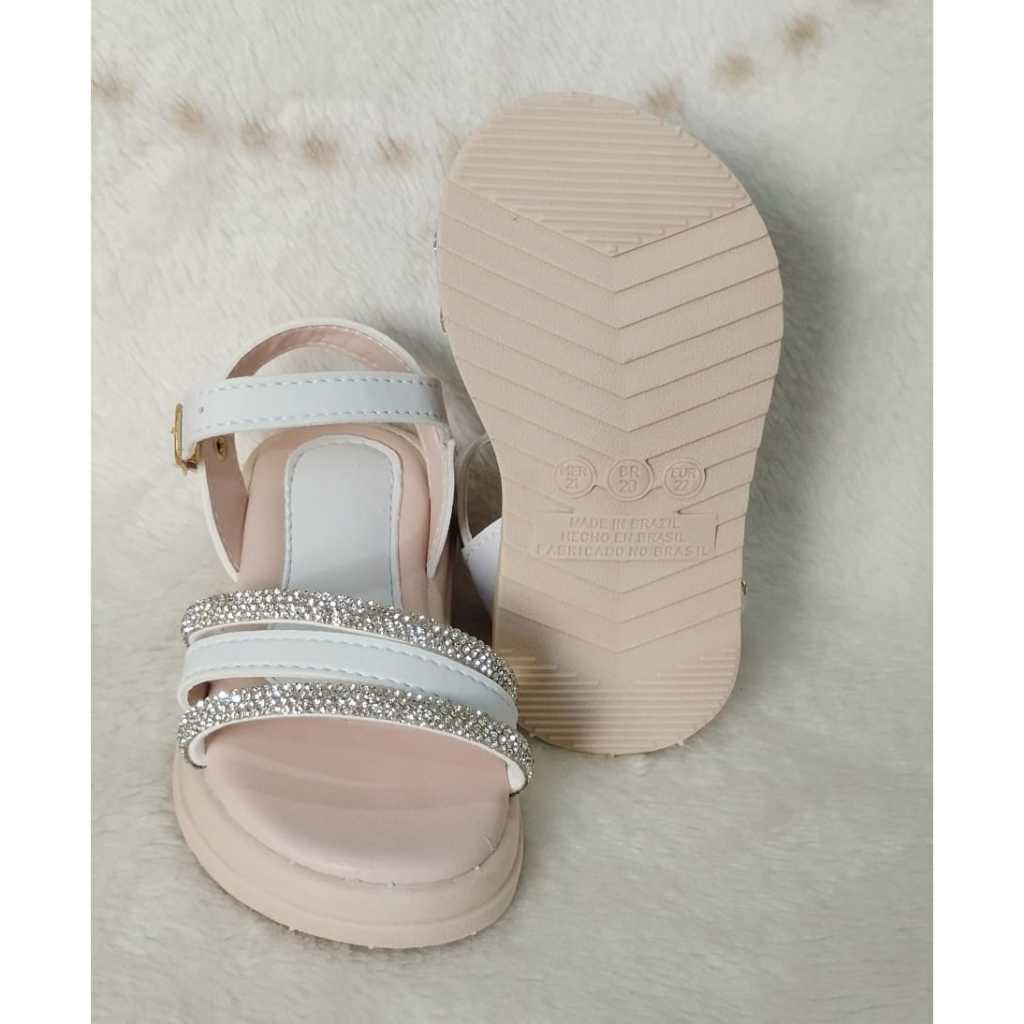 Sandália menina Infantil confortável Branca ou Dourada com Brilho estilosa