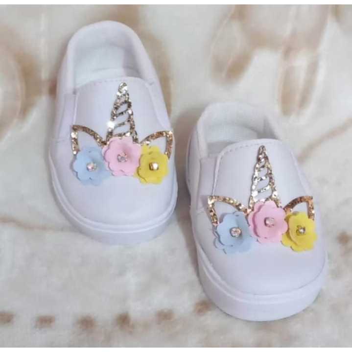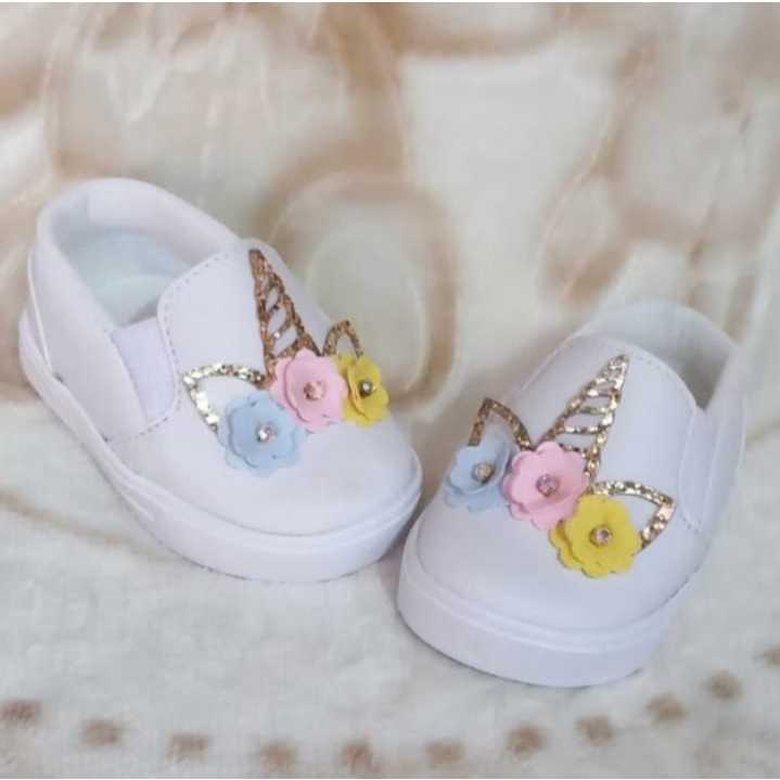 Tênis de bebê unicórnio branco calce fácil menina infantil
