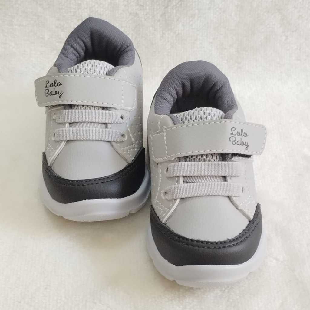 Tenis infantil cinza com preto confortavél volta as aulas estiloso fechamento fácil