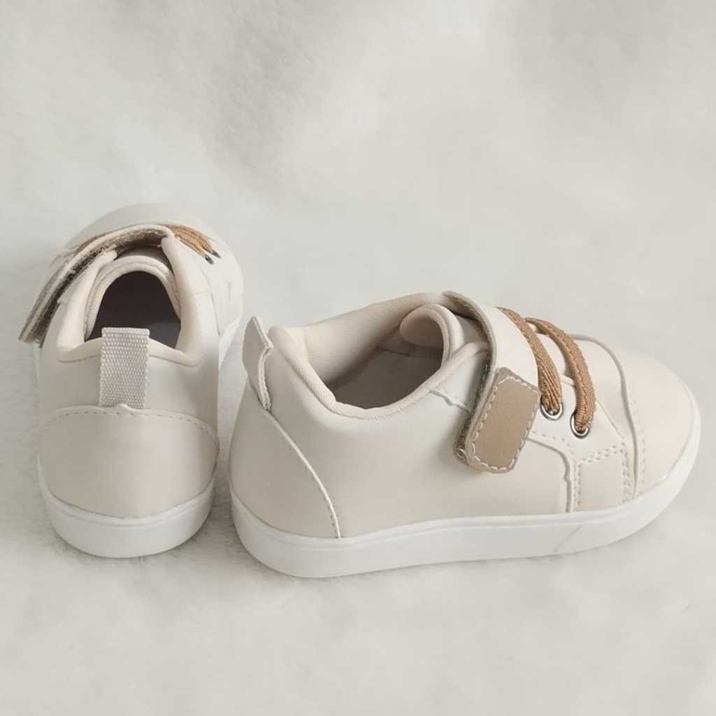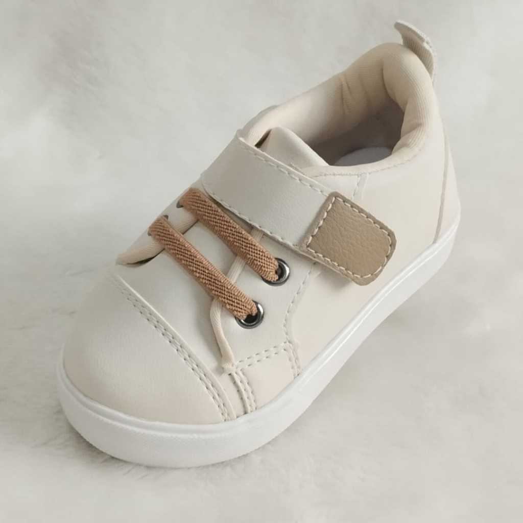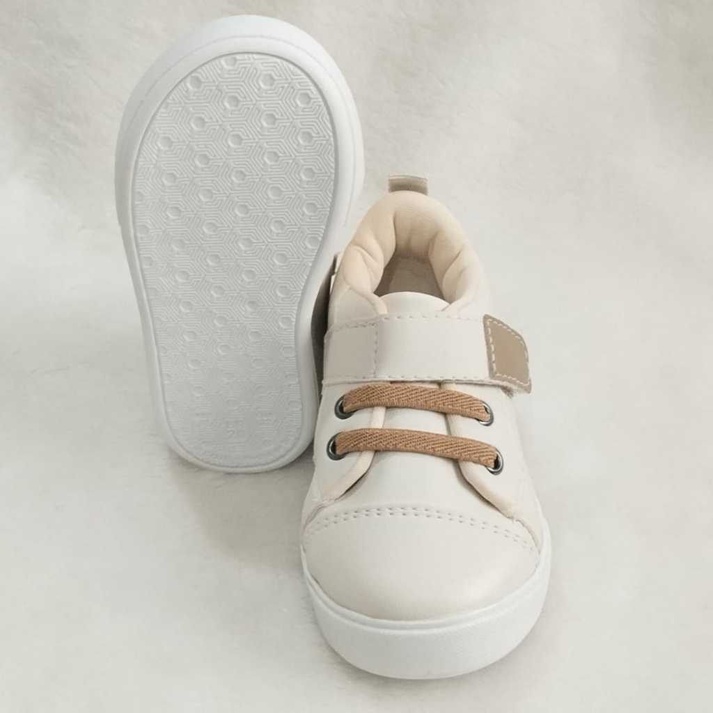 Tênis menino infantil bege off confortavél com elástico e fechamento fácil estiloso casual