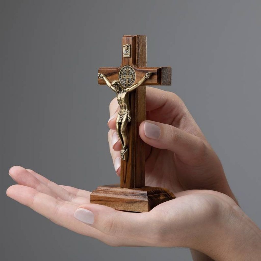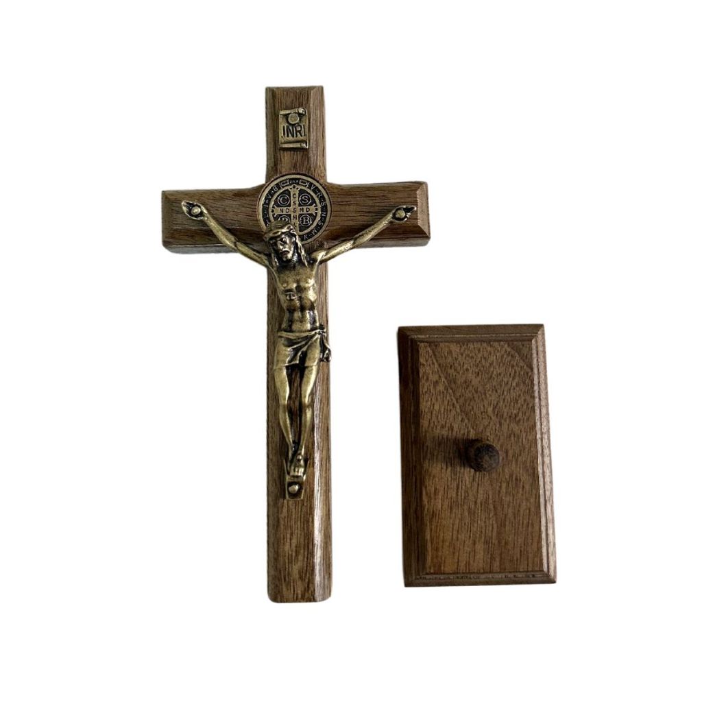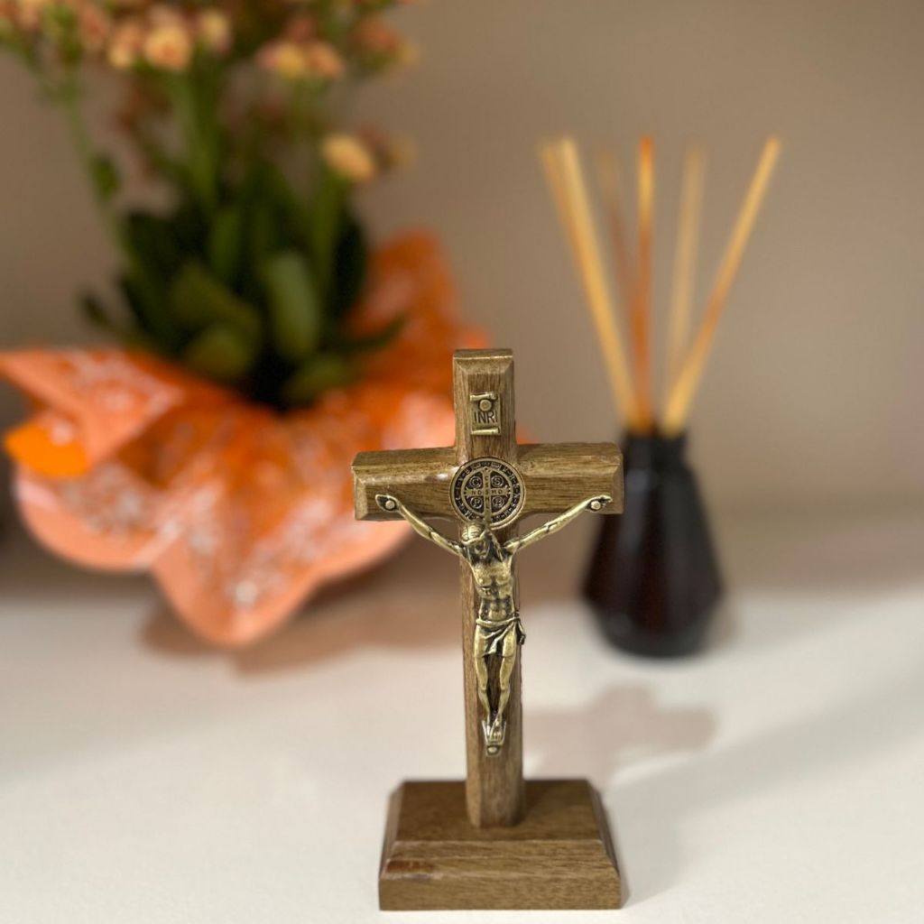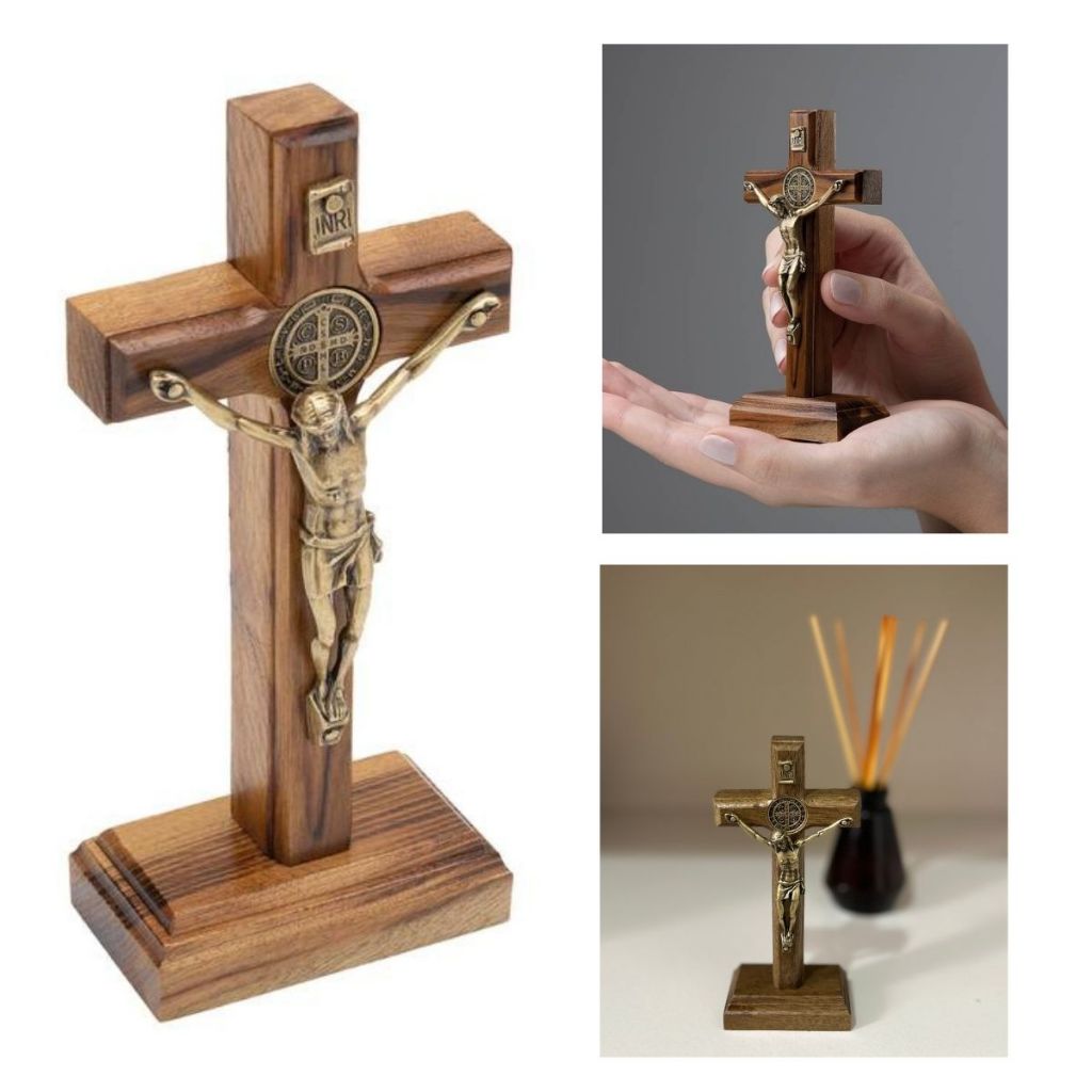 Crucifixo de Madeira Para Porta Mesa Parede Tradicional 12cm