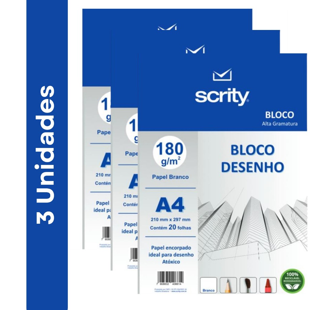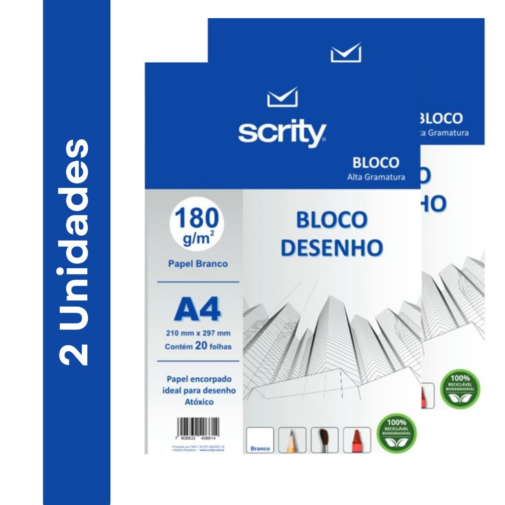 Bloco para Educação Artística Desenho A4 Branco 180 g 20 fls. - Scrity