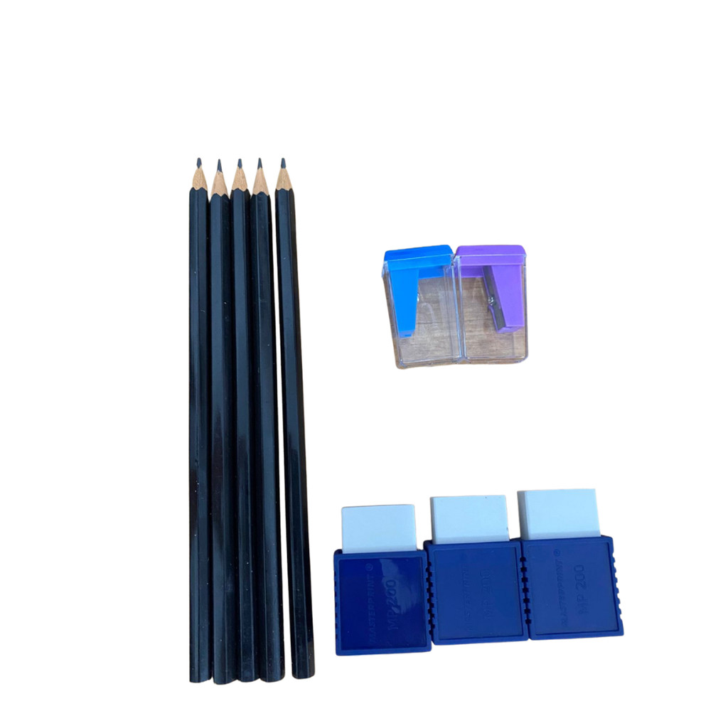 Kit Escolar Completo: 5 Lápis, 3 Borrachas e 2 Apontadores – Ideal para Estudo e Desenho