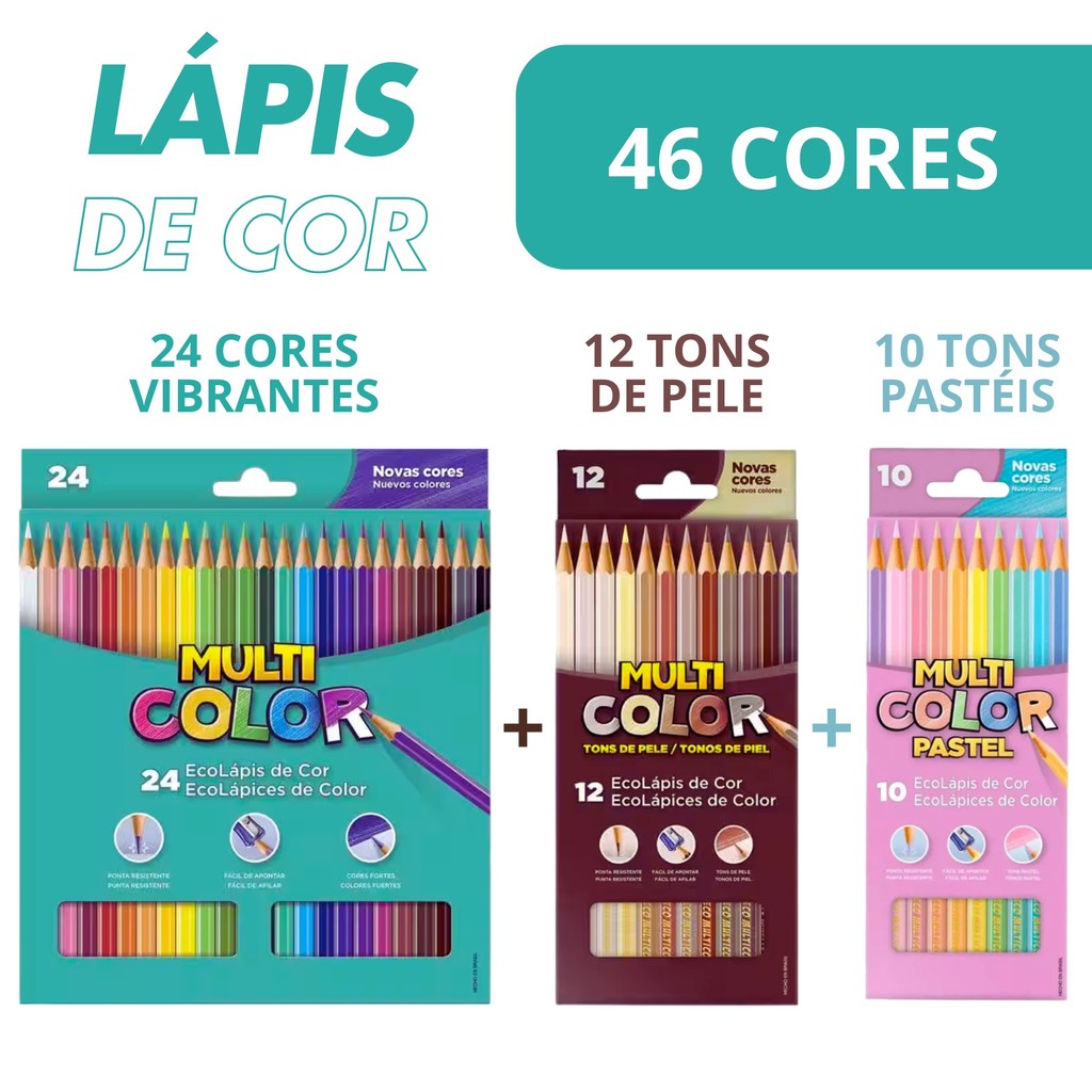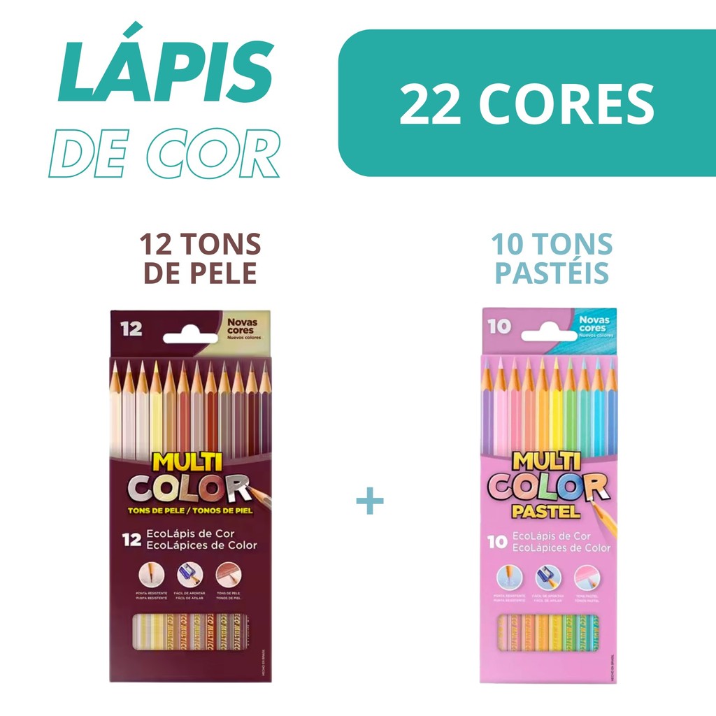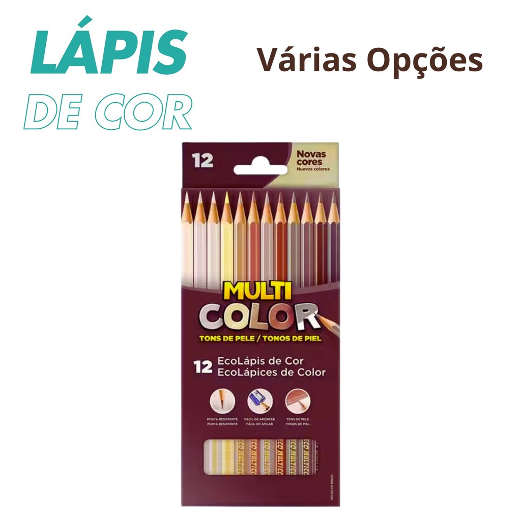 Lápis de Cor Multicolor Cores Vivas - Tons de Pele - Tons Pastéis, Com 24 ou 12 Cores Unitários ou Kits