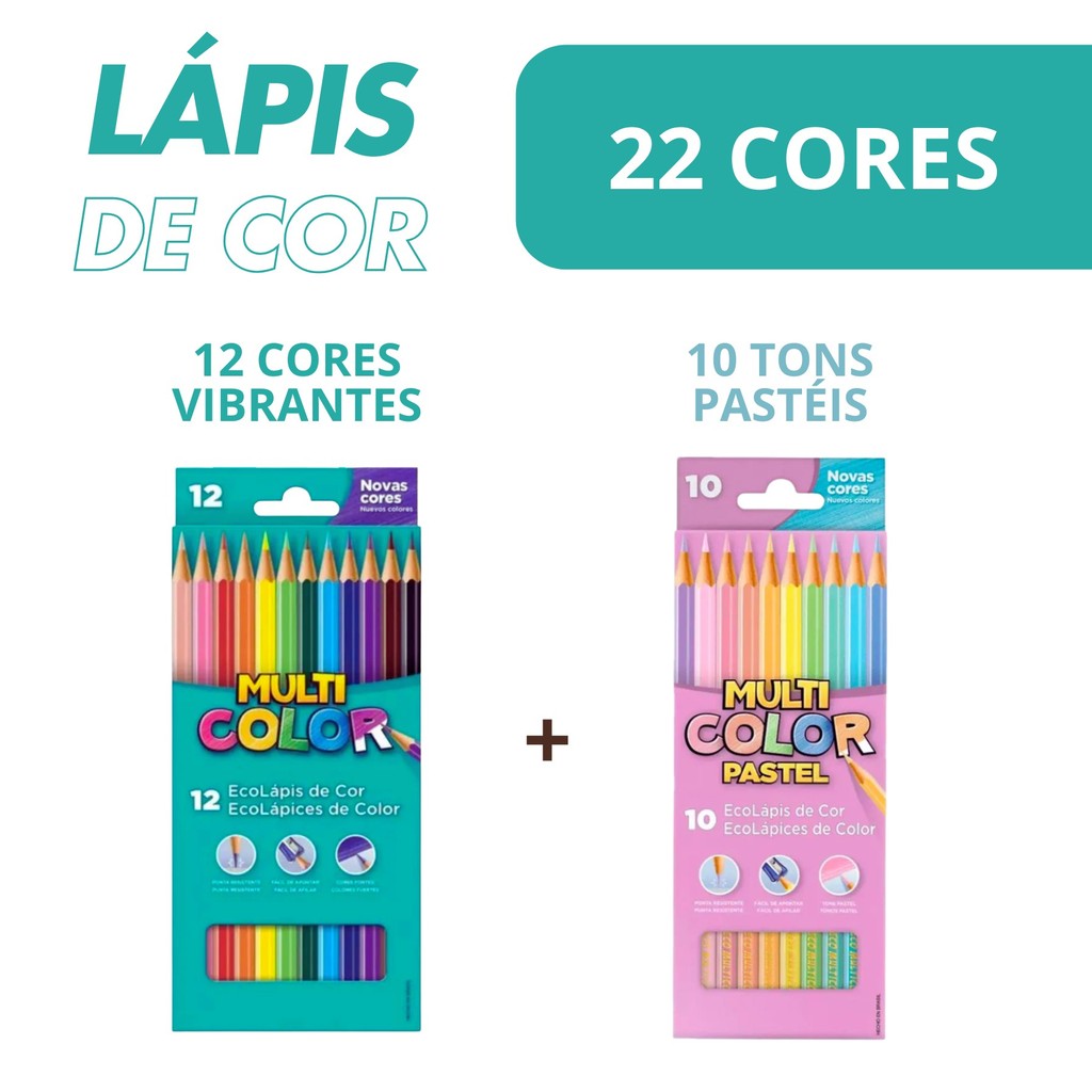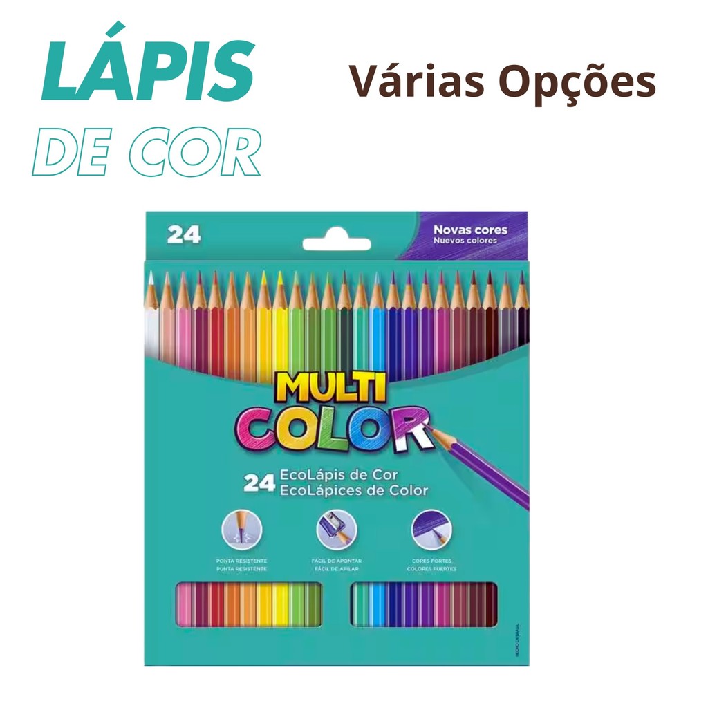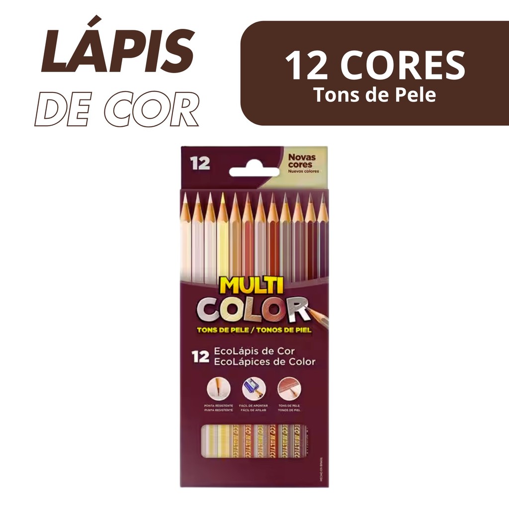 Lápis de Cor Multicolor Cores Vivas - Tons de Pele - Tons Pastéis, Com 24 ou 12 Cores Unitários ou Kits