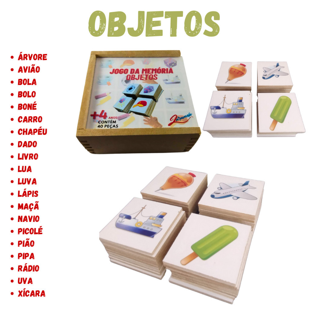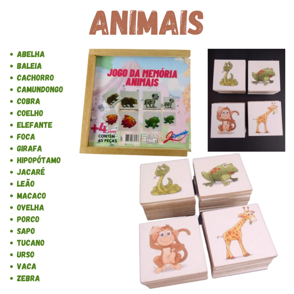 Kit 2 Jogos da Memória Objetos Animais Educação Educativo Pedagógico Raciocínio Alfabetização