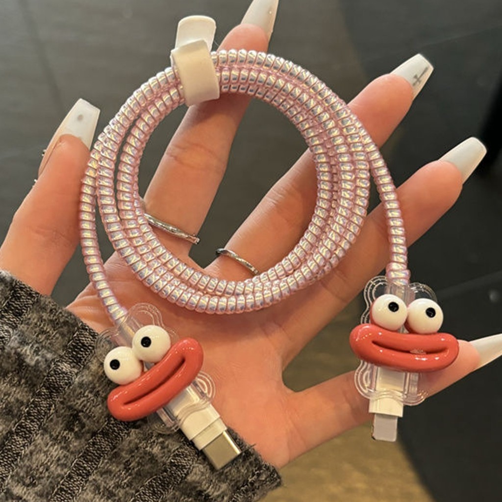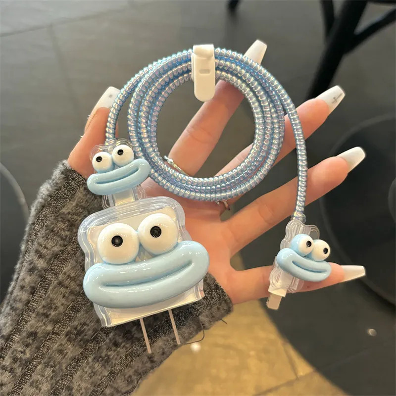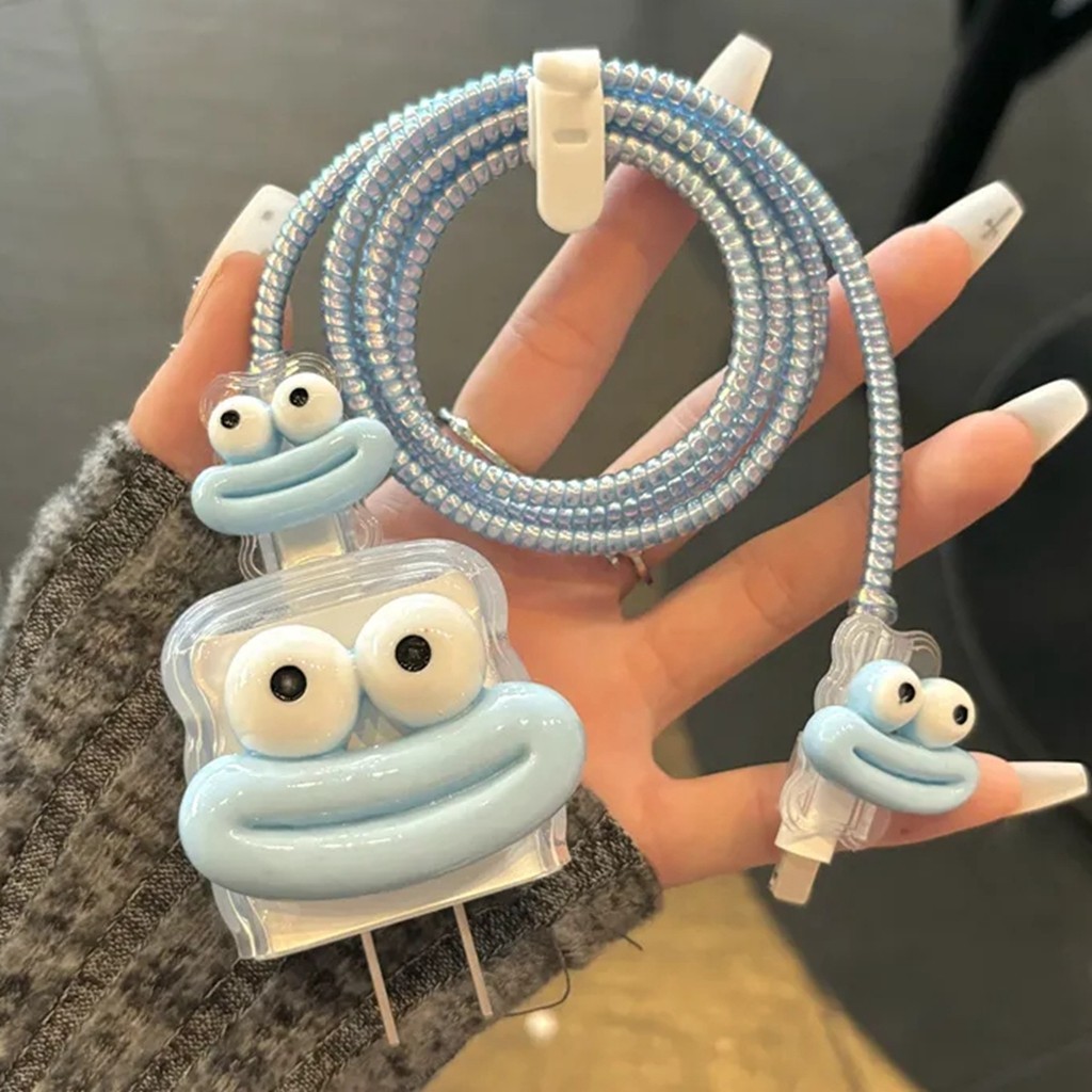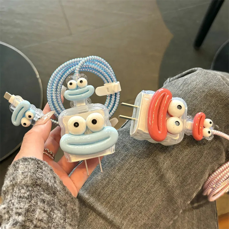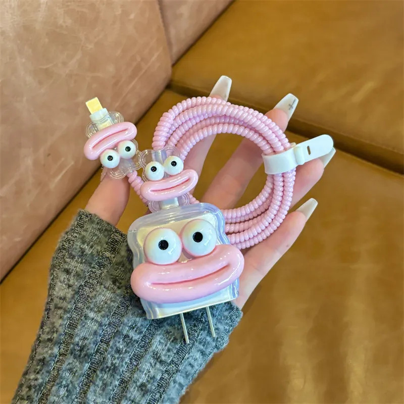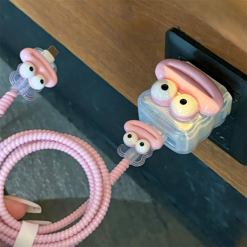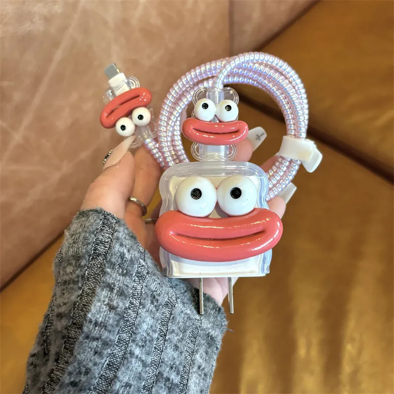 Conjunto De Caixa Do Carregador Para iPhone 18W/20W Funny Big Eyes Thick Lips 3D Decor Charging Protector Linha De Dados