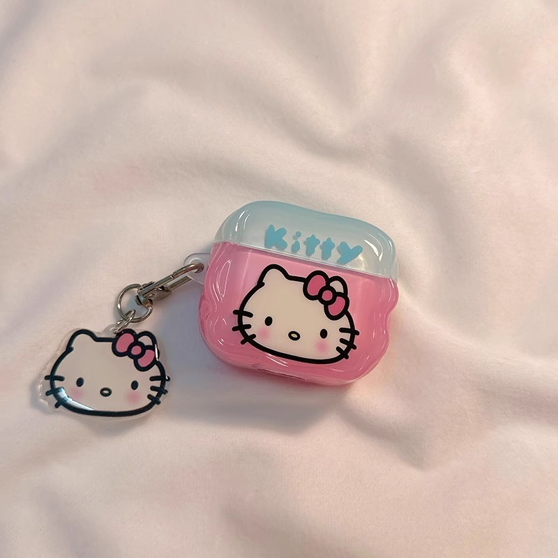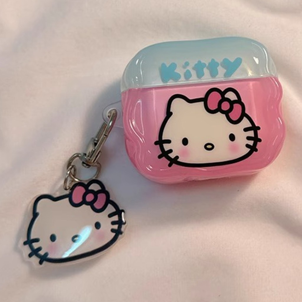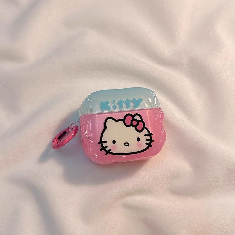 Capa Para Airpods 4 Pro 3 2 1 Cor Contraste Azul Rosa Bowknot Hello Kitty Padrão Wave Edge Soft TPU De Fone De Ouvido À