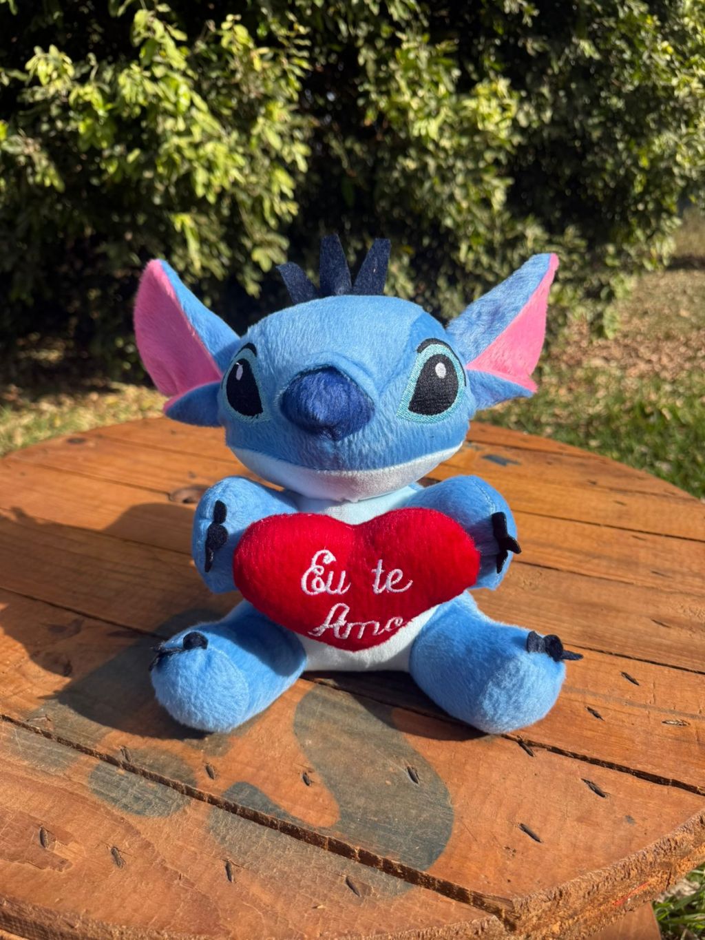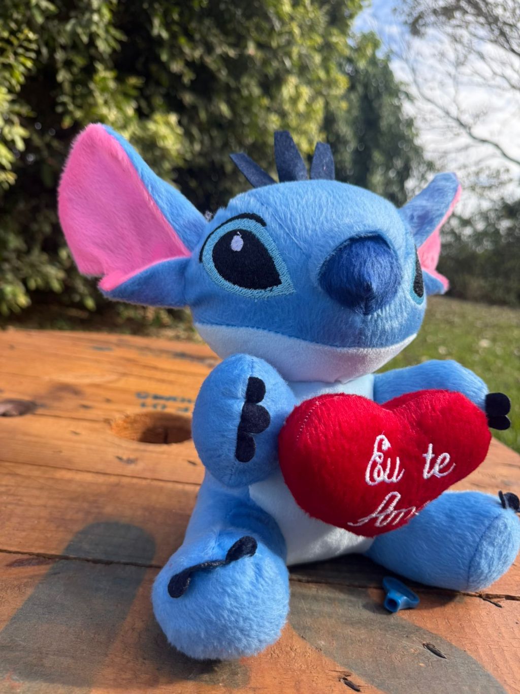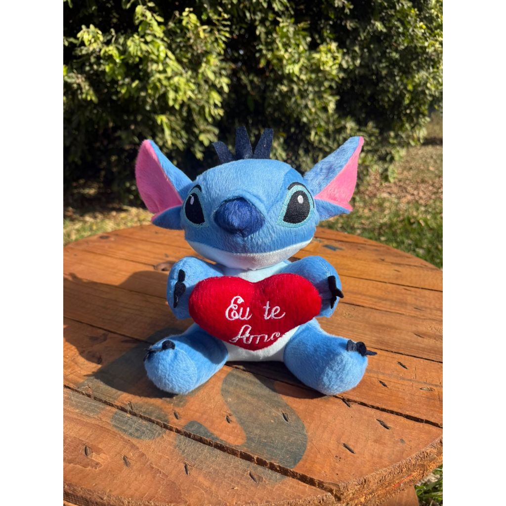 Boneco De Pelúcia Bicho Stitch 25cm Com Coração Eu Te Amo - Presente dia dos Namorados