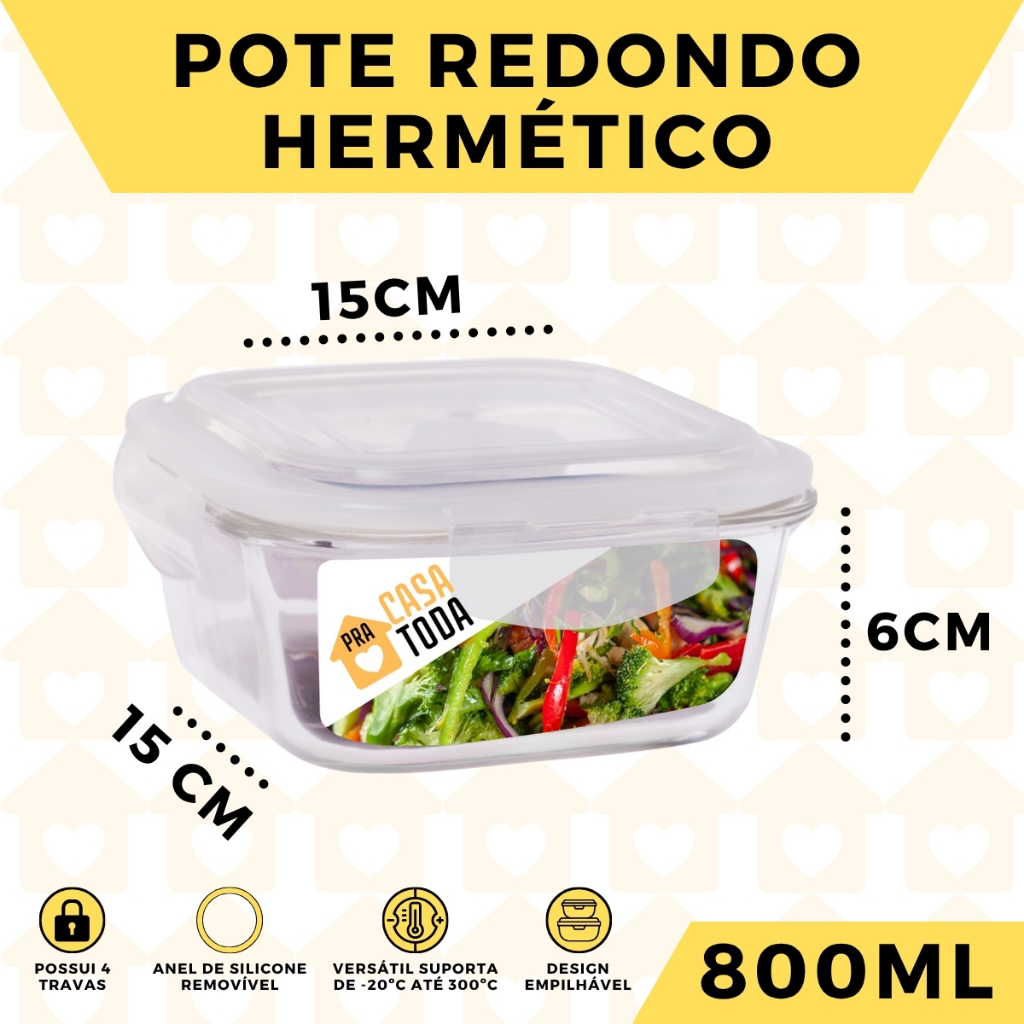 10 Pote 800ml Vidro Marmita Fitness Tampa 4 Trava Hermético