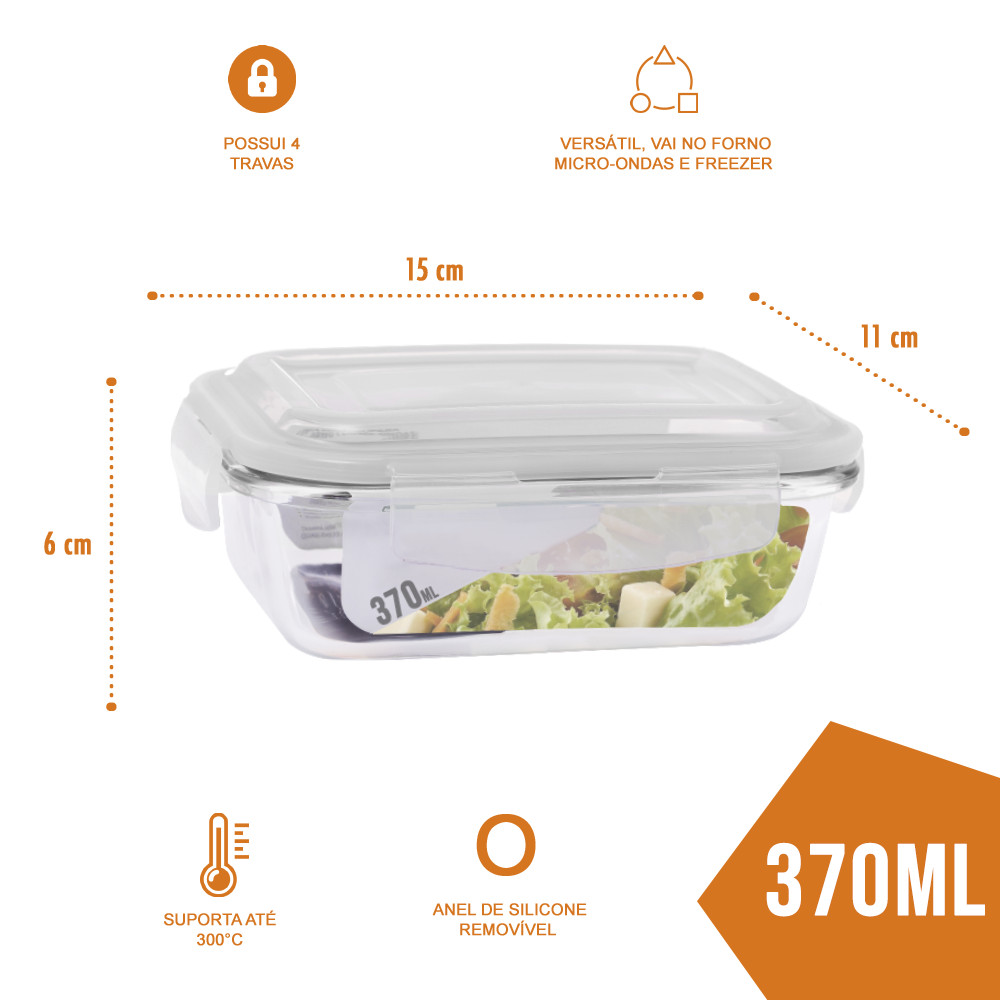 Kit 20 Pote 370ml Retangular Hermética Vidro Marmita Fitness