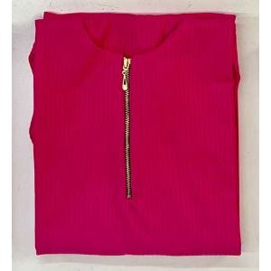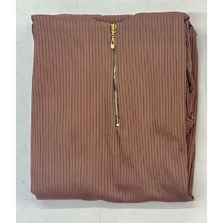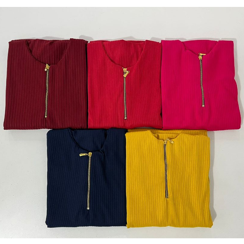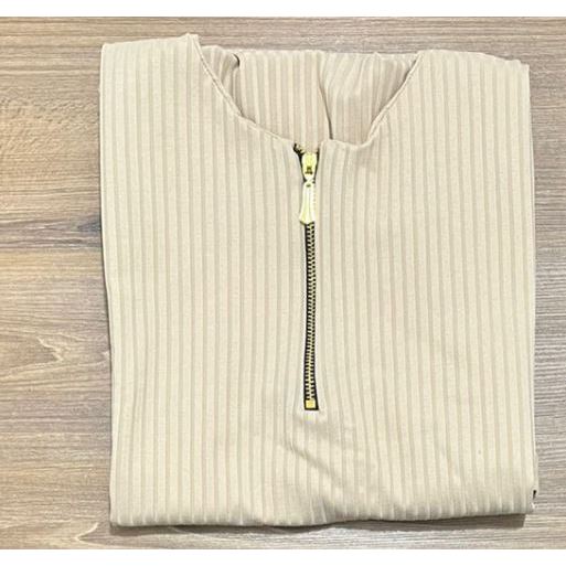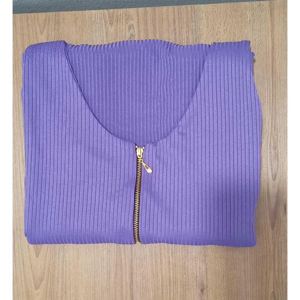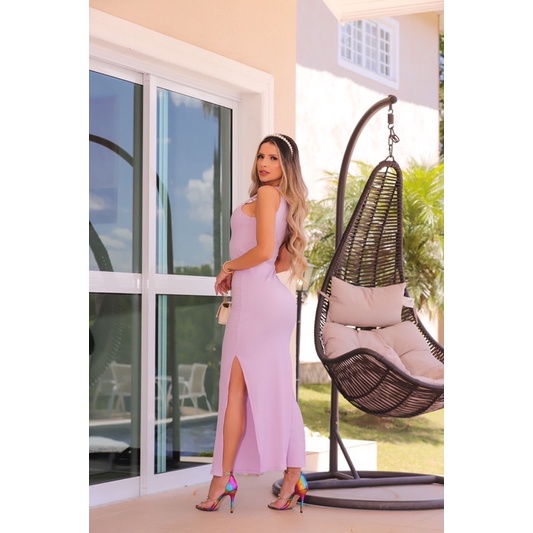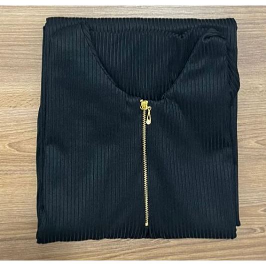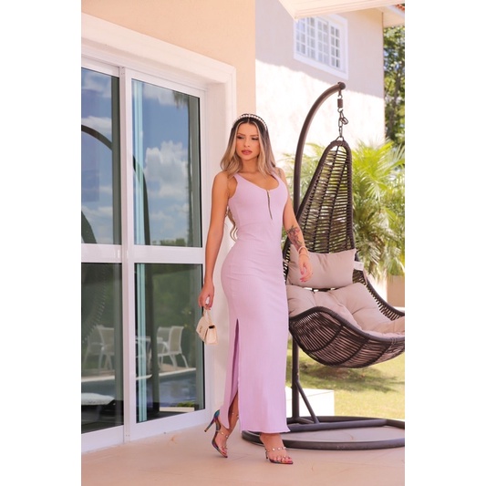 Vestido Femino Longo Malha Canelada com Zíper no Decote