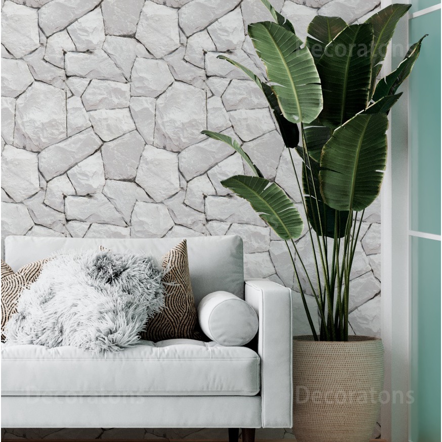 Papel de Parede Pedra 3D Branca Autoadesivo 10mx57cm PED85G