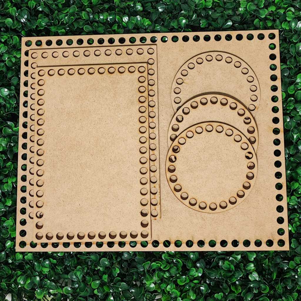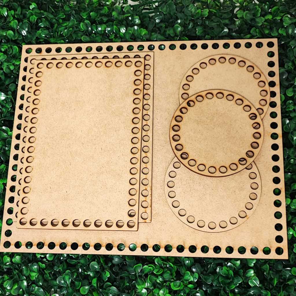 Kit Base MDF Crochê Fundo Bolsa Kit Higiene Bebê 6 Peças Fio de Malha Corte Laser