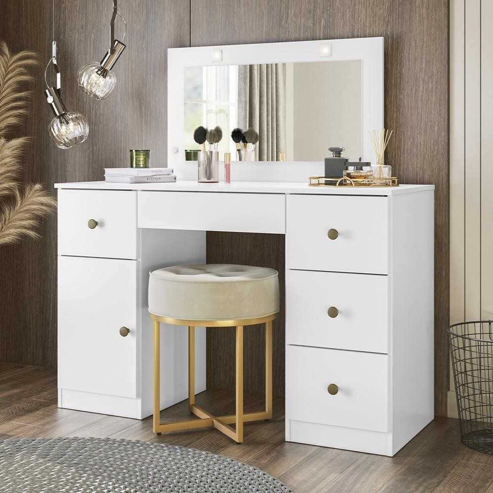 Penteadeira Camarim Sonhos com 5 Gavetas e 1 Porta e LED