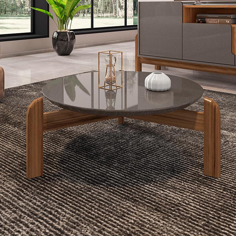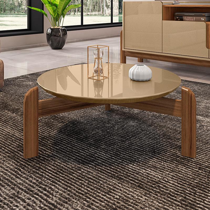 Mesa de Centro Sala Lizz Redonda com Pés em Madeira Maciça