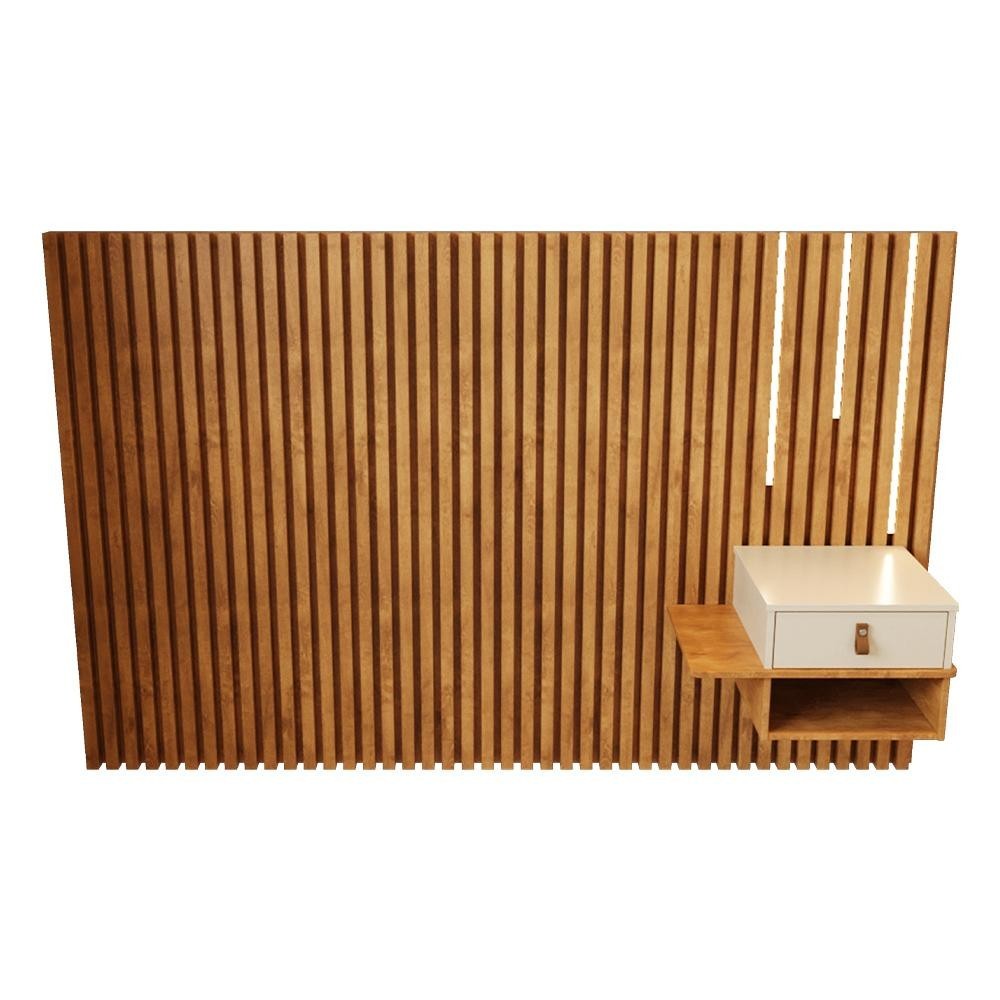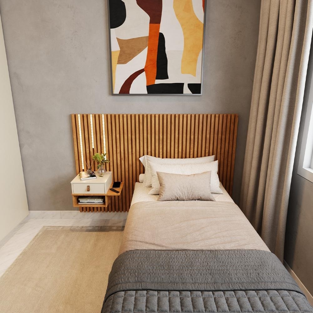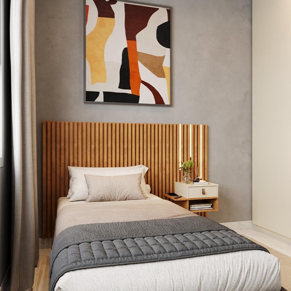 Cabeceira Solteiro Ripada Quarto Manila 1 Mesa e Led