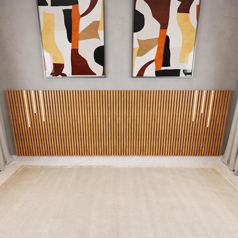 Cabeceira Para Cama Casal e Queen Ripada Quarto Manila e LED