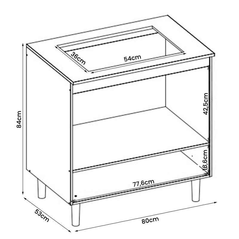 Balcão Cozinha para Cooktop 80cm com 1 Gaveta