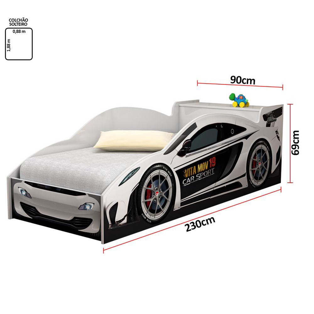 Cama Carro Solteiro Com Baú e Grade de Proteção