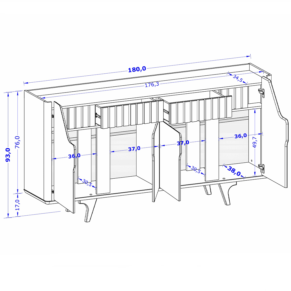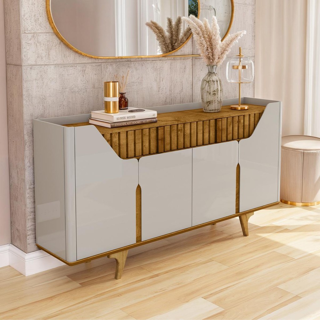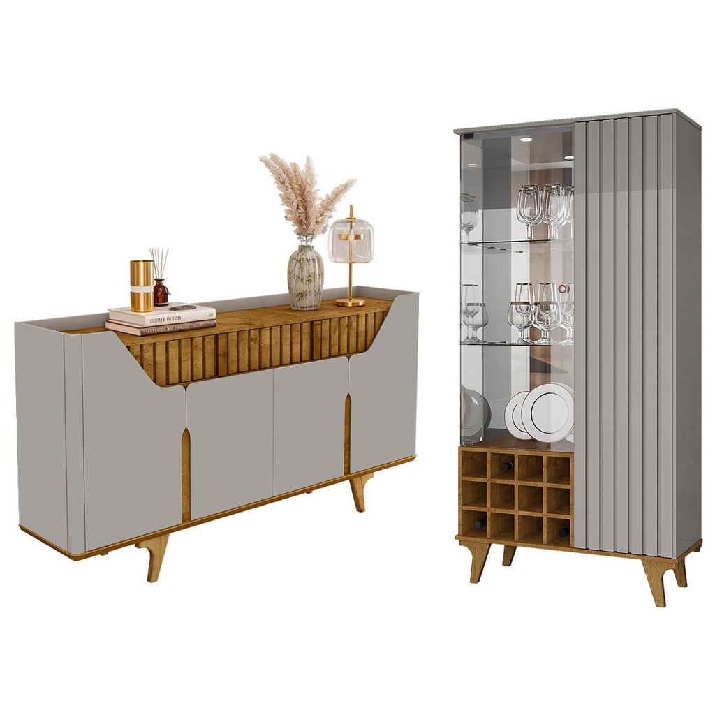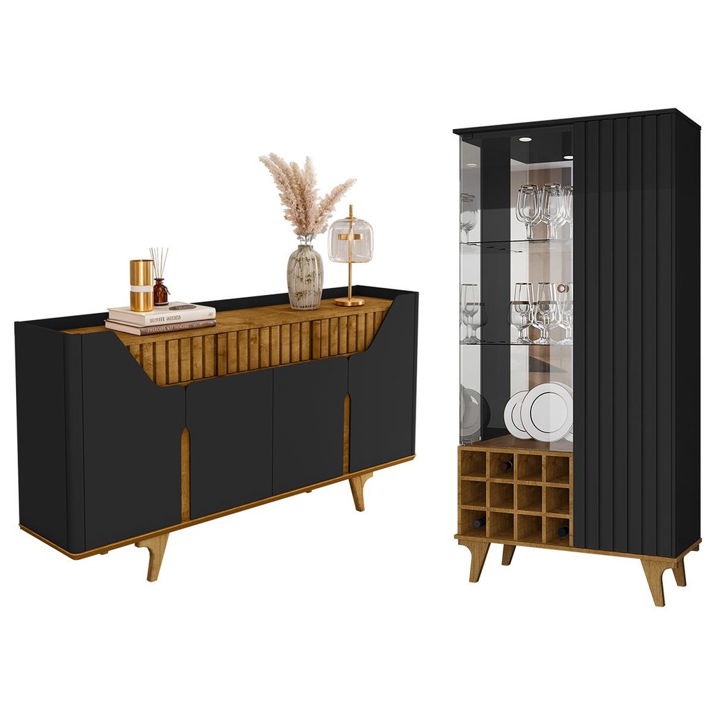 Kit de Aparador Danubio e Cristaleira Elba Pé Madeira Maciça