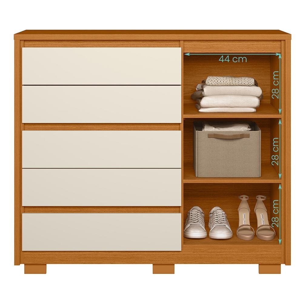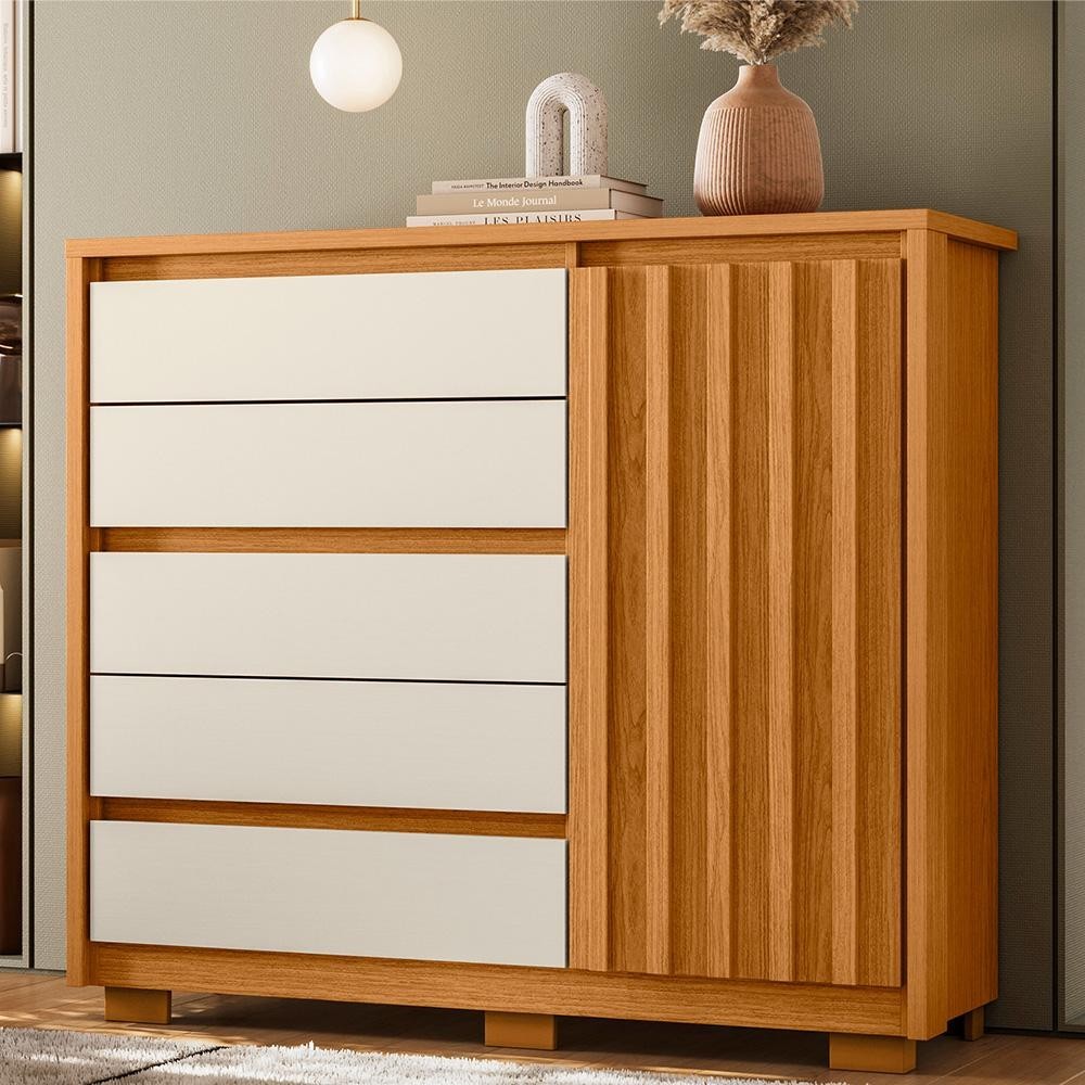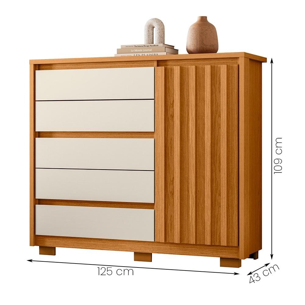 Cômoda Sapateira Quarto Duetto 05 gavetas e 1 Porta Ripada