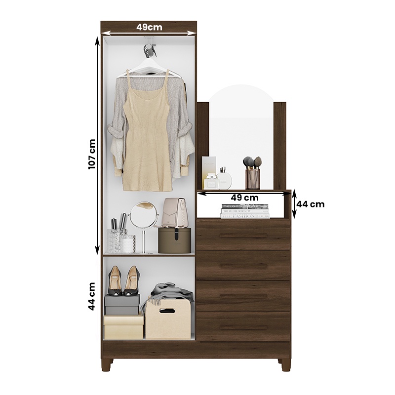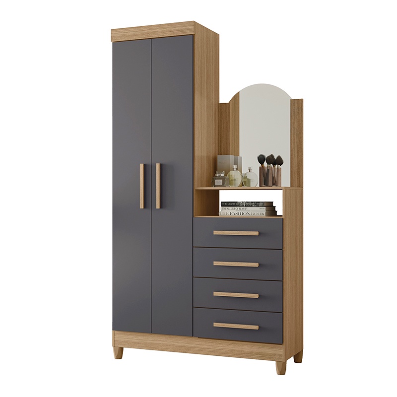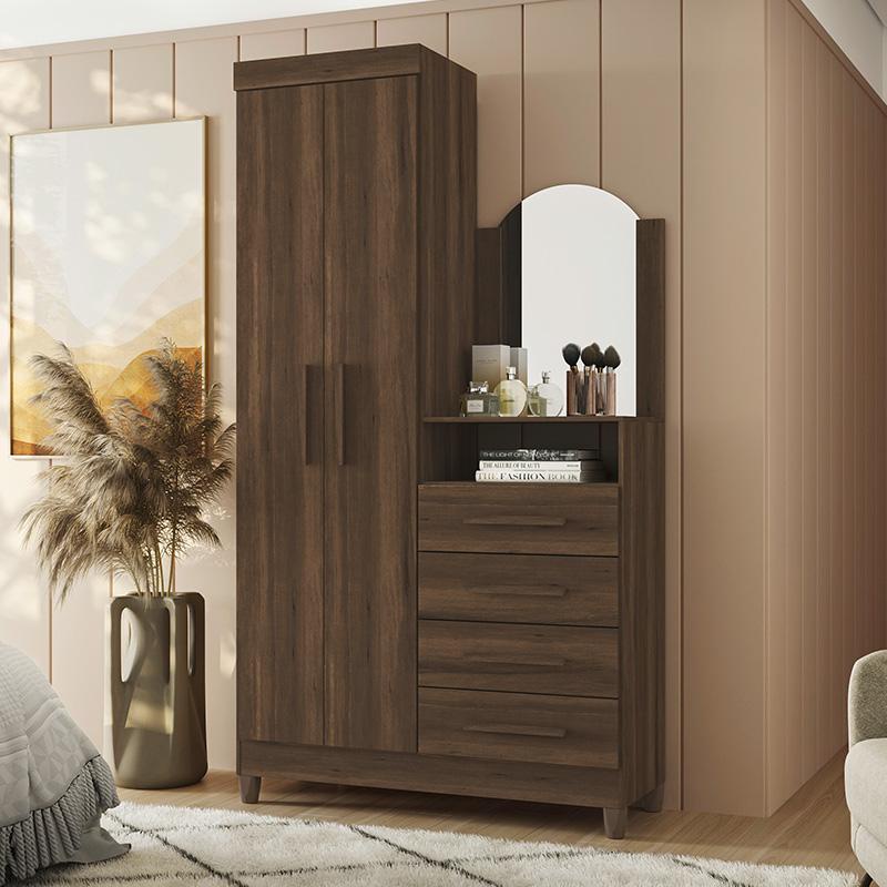 Guarda Roupa Cômoda Capri 2 Portas 4 Gavetas e Espelho
