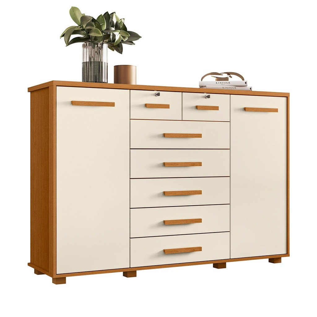 Cômoda Quarto Fontana com 7 Gavetas e 2 Portas Nature/Titanium