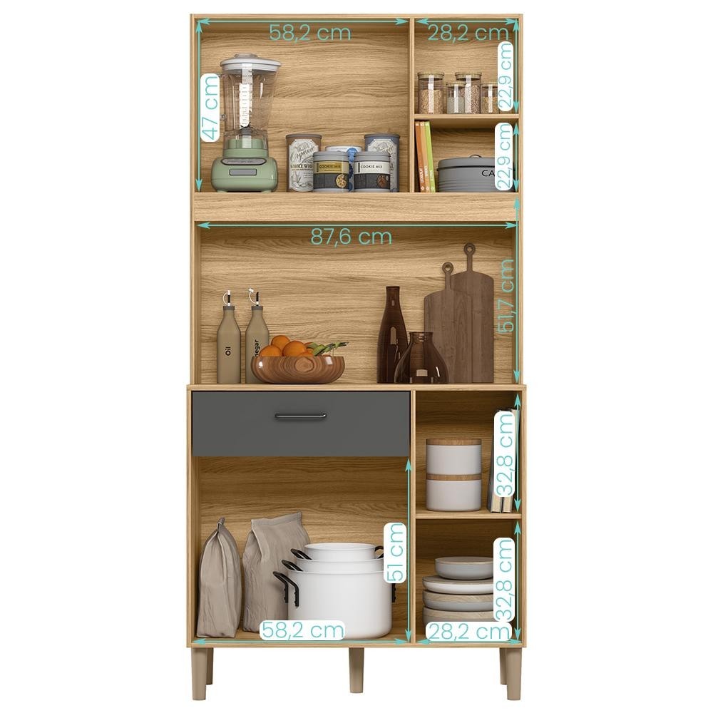 Armario de Cozinha Erva Doce 90 cm 6 Portas e 1 Gaveta