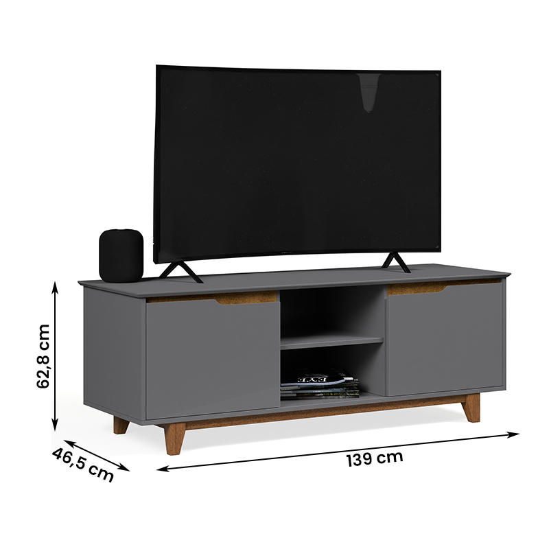 Rack Bancada Flow 2 Portas Com Pés de Madeira Maciça