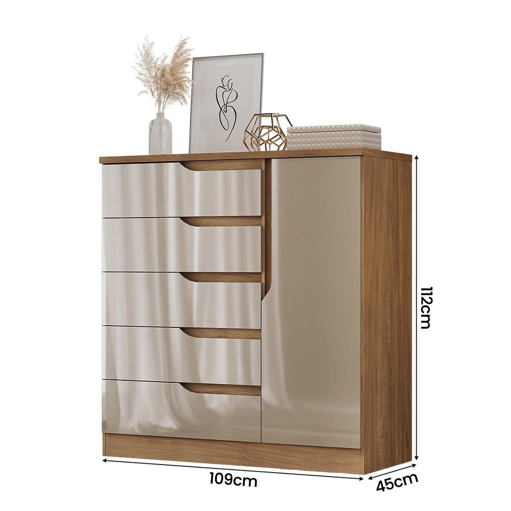 Comoda Paris Quarto Com 5 Gavetas e 1 Porta