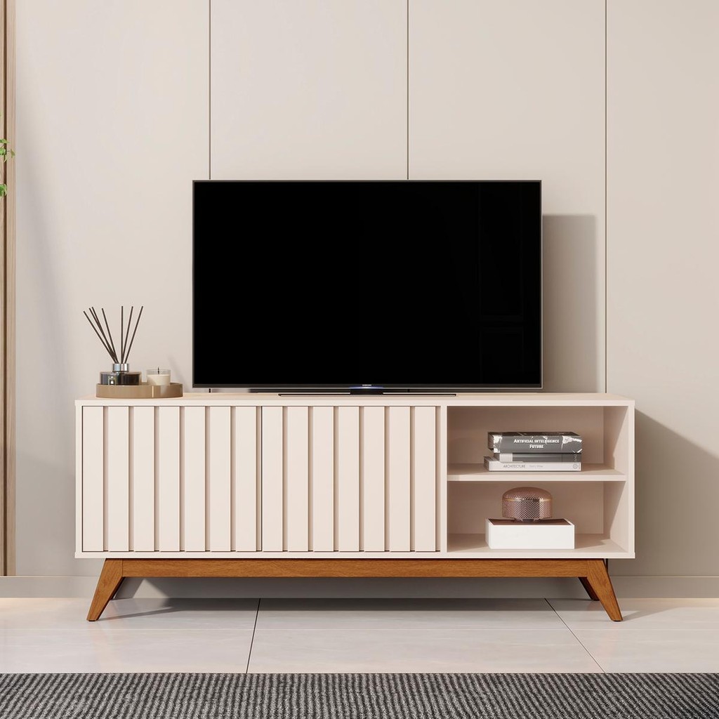 Rack Bancada Açai 140 cm TV até 60" com Pés Madeira Maciça
