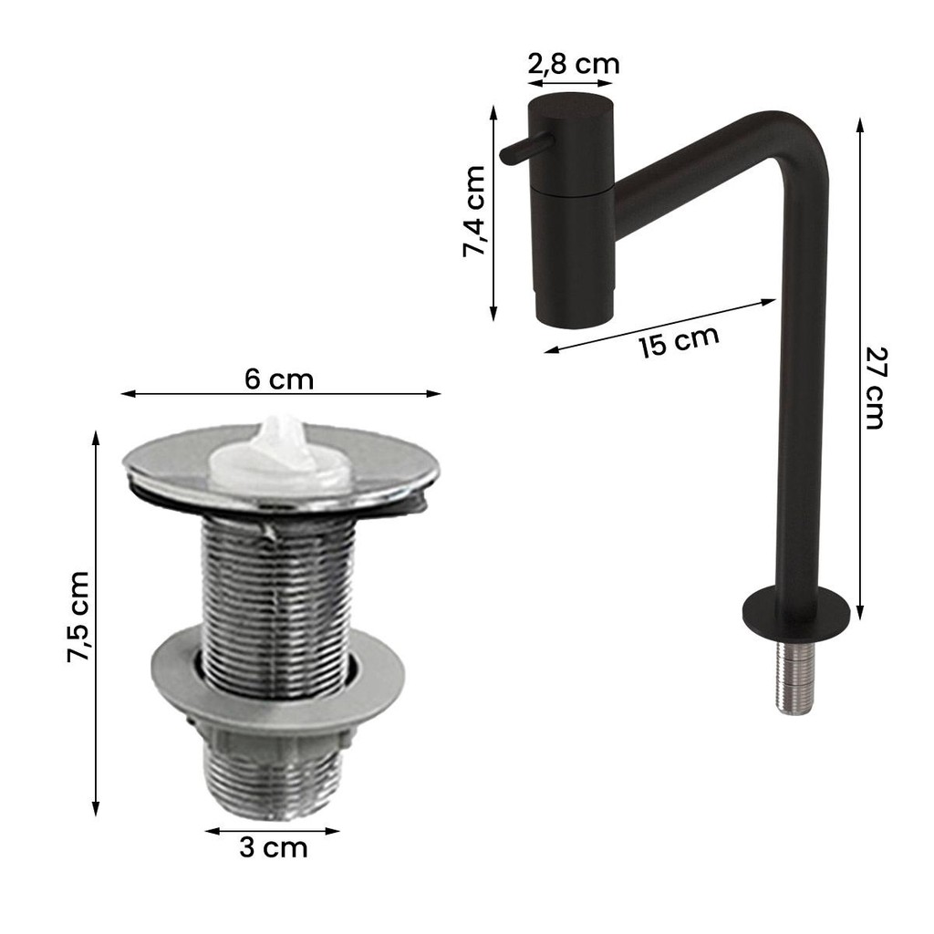 Cuba Raffinata Com Torneira Inox Black e Valvula Oculta Branco Brilho
