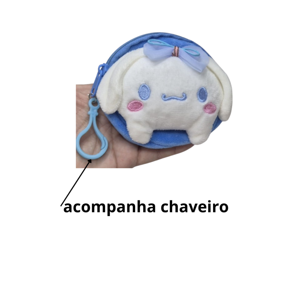 Chaveiro Porta Moedas Pelúcia Sanrio Hello Kitty Kuromi My Melody Cinnamoroll – Gato Cachorro Sapo Coelho Kawaii