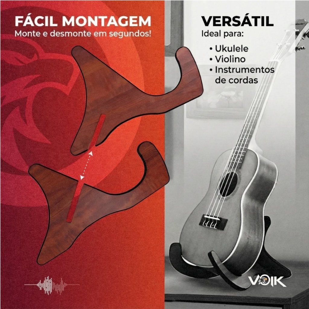 Suporte Para Violino e Ukulele Madeira Voik SVU-50 Portátil