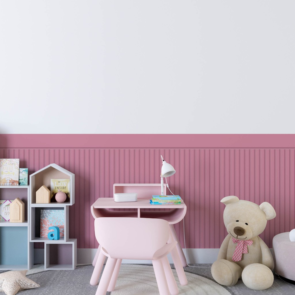 Papel De Parede Adesivo Ripado Rosa Com Faixa Para Meia Parede