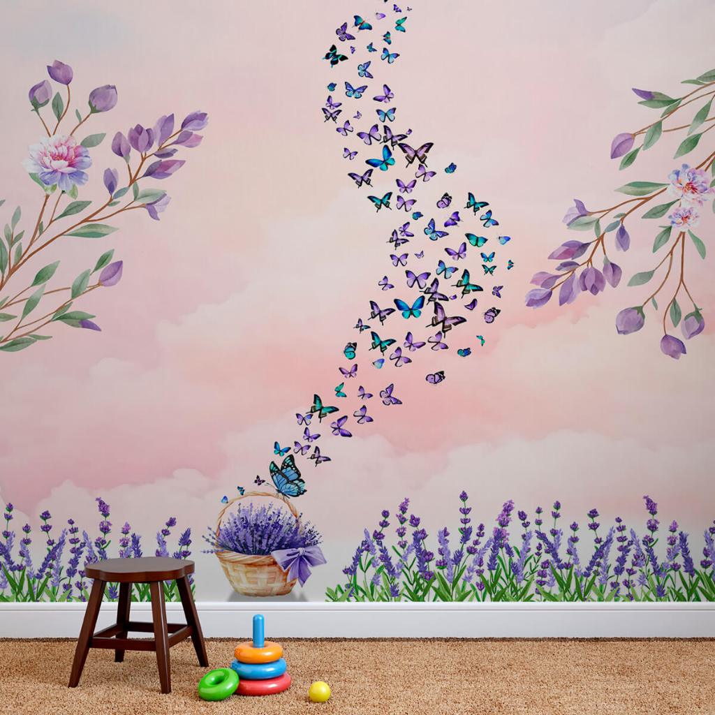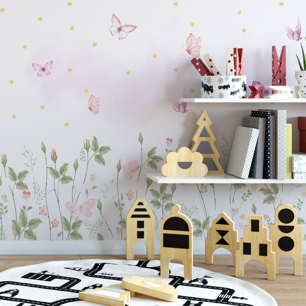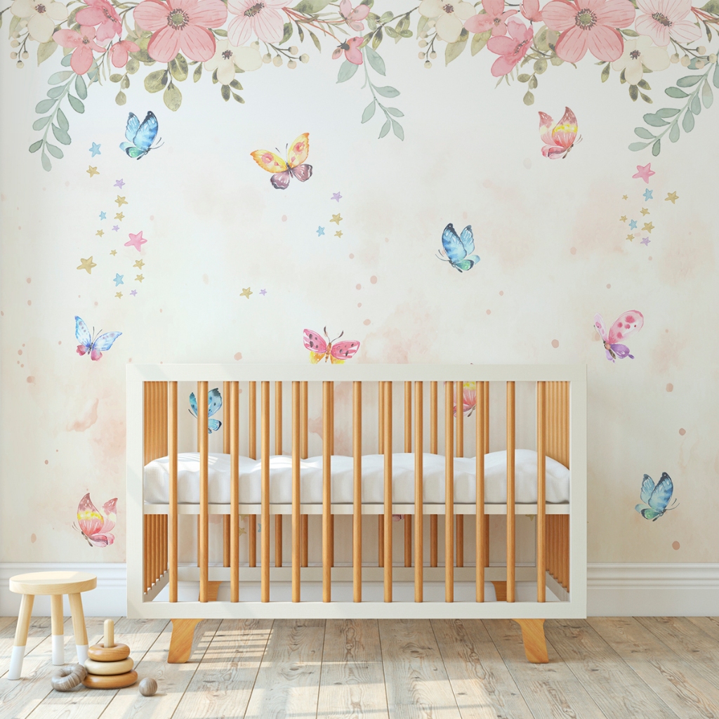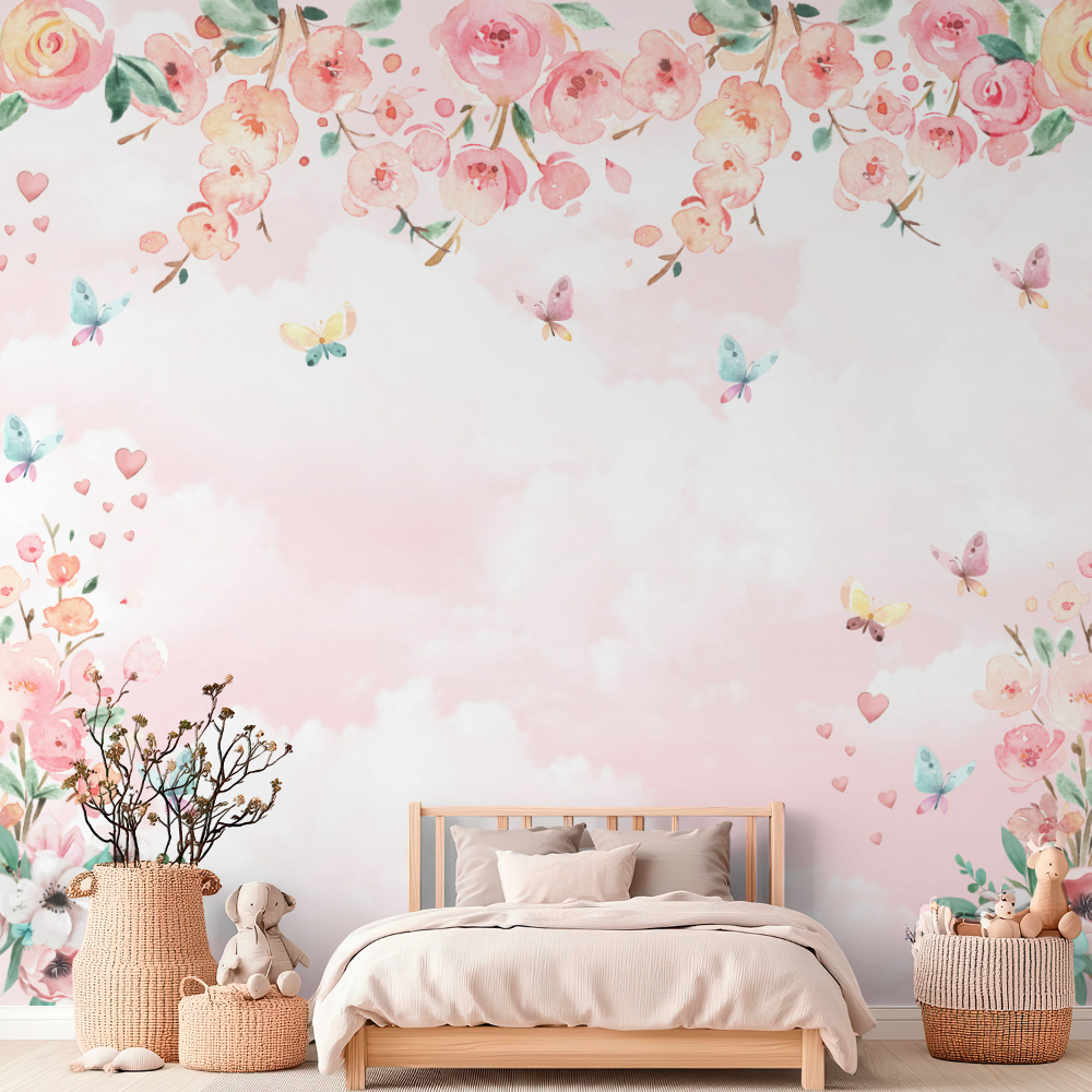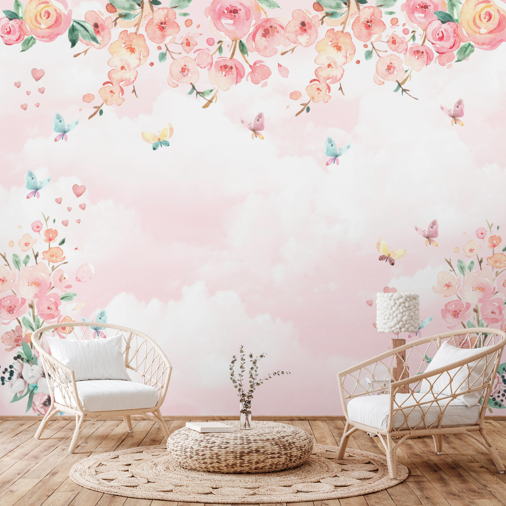 Papel De Parede Adesivo Floral Aquarelado Com Borboletas