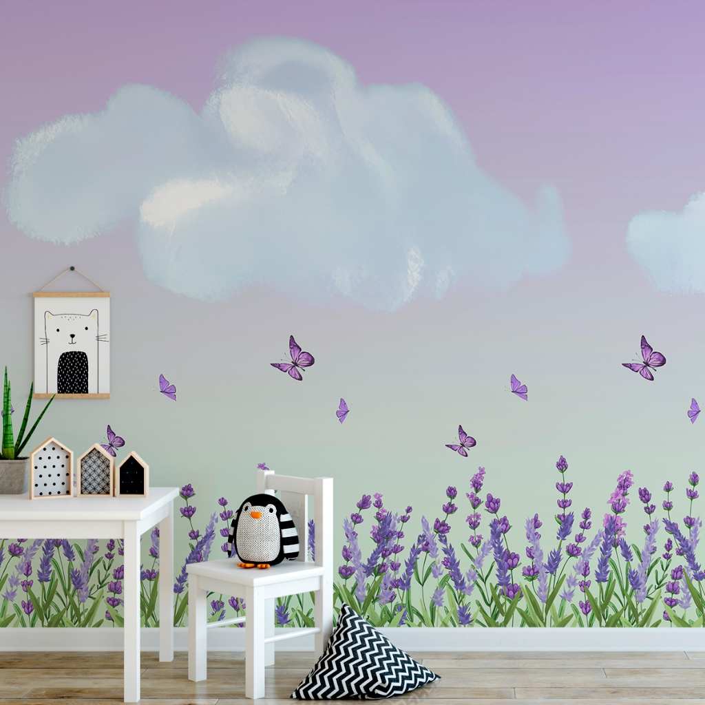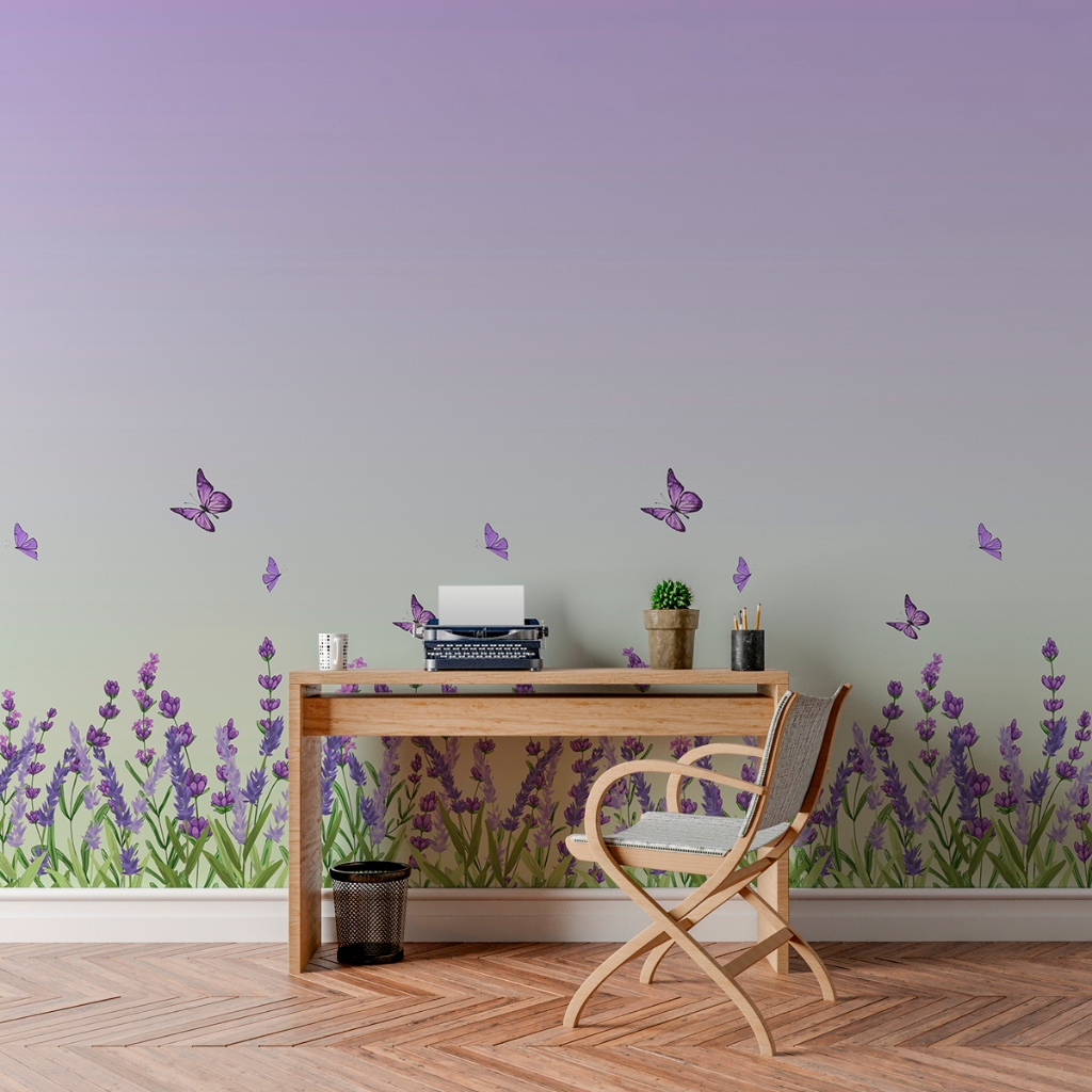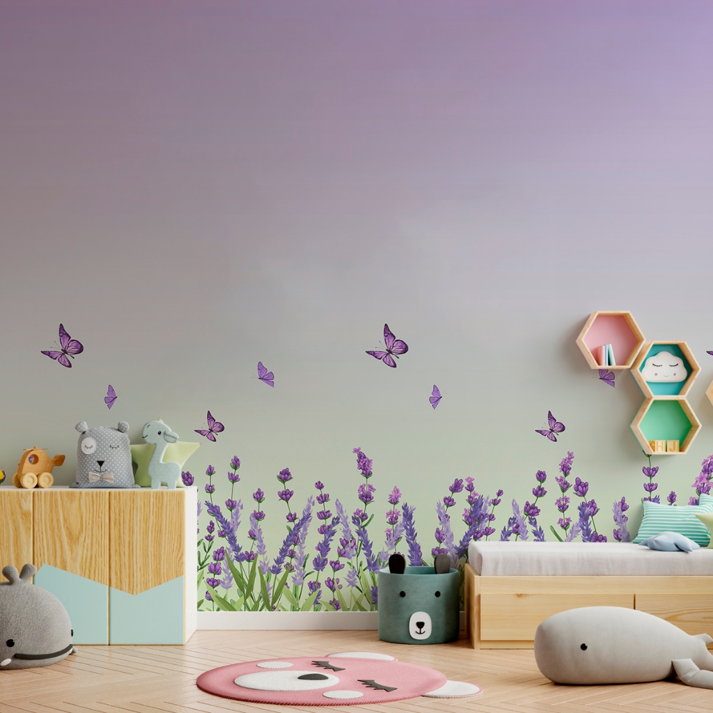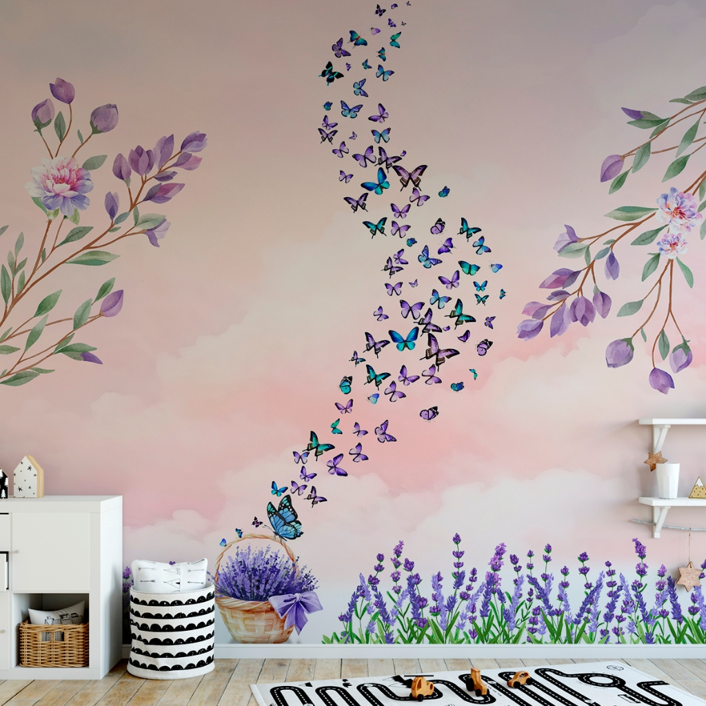 Papel De Parede Adesivo Floral Aquarelado Com Borboletas