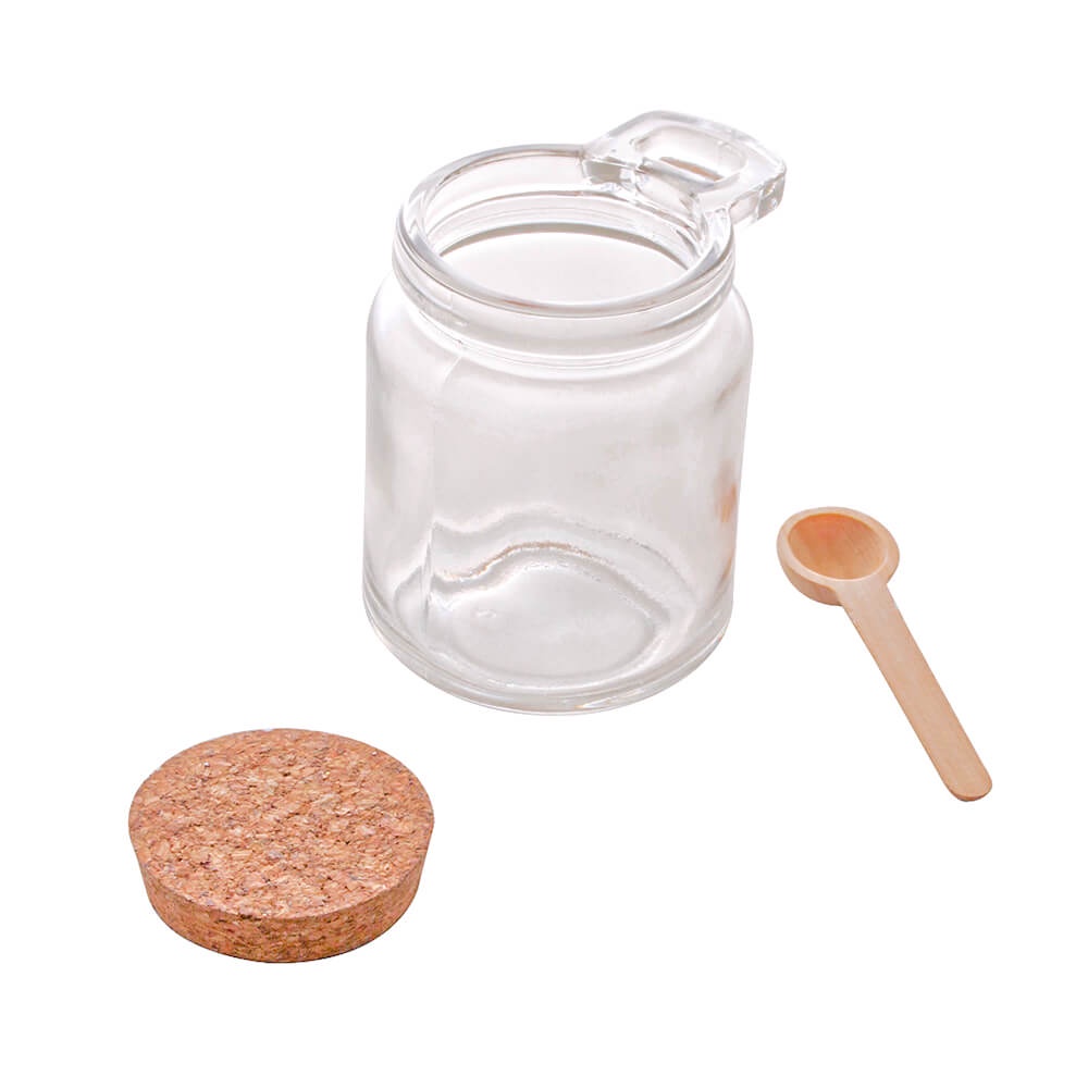 Potes de Vidro Porta Tempero com Colher e Tampa Bambu 4 peças - Lyor 1902