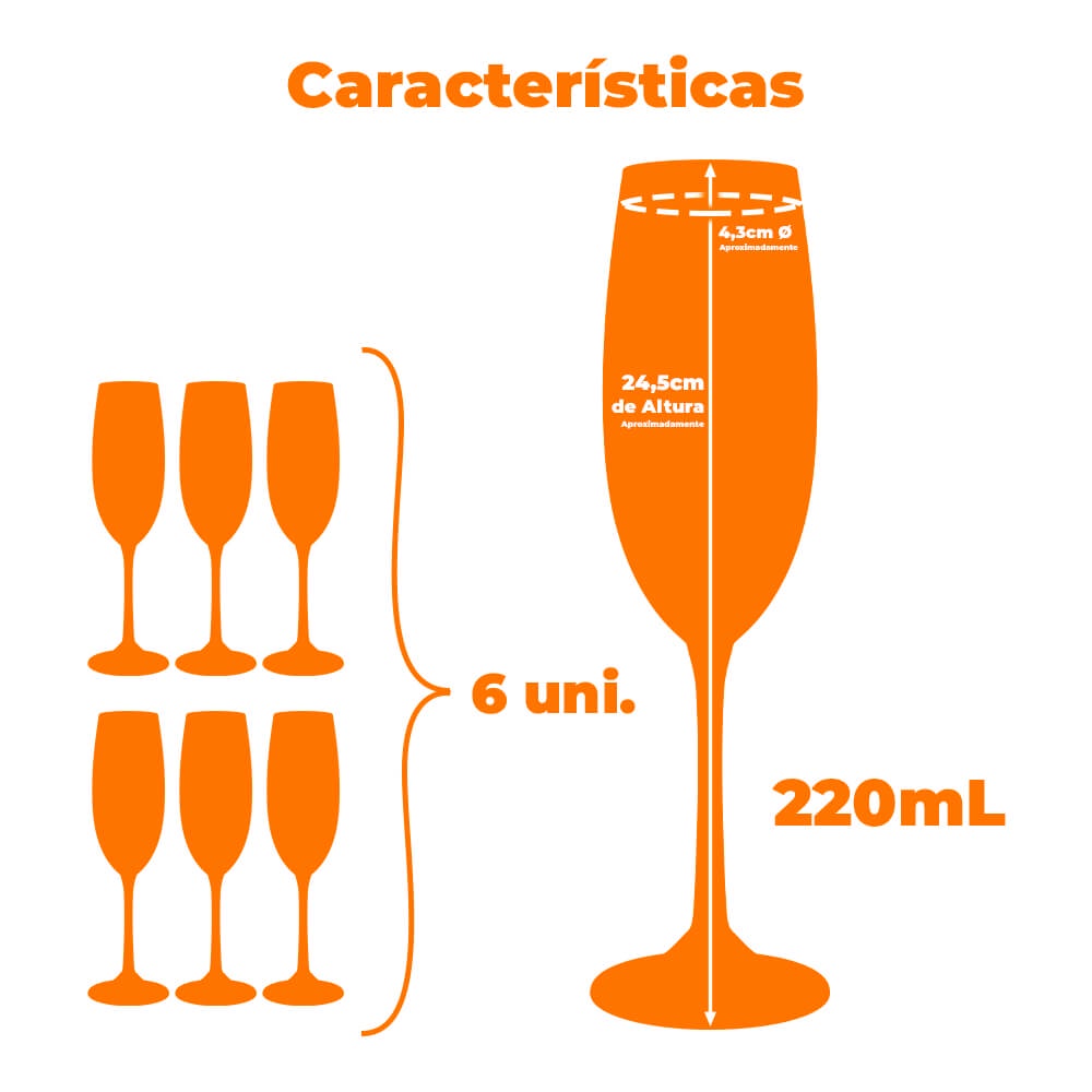 Jogo de Taças de Champanhe Bohemia Cristal 6 peças 220ml 4S032/220
