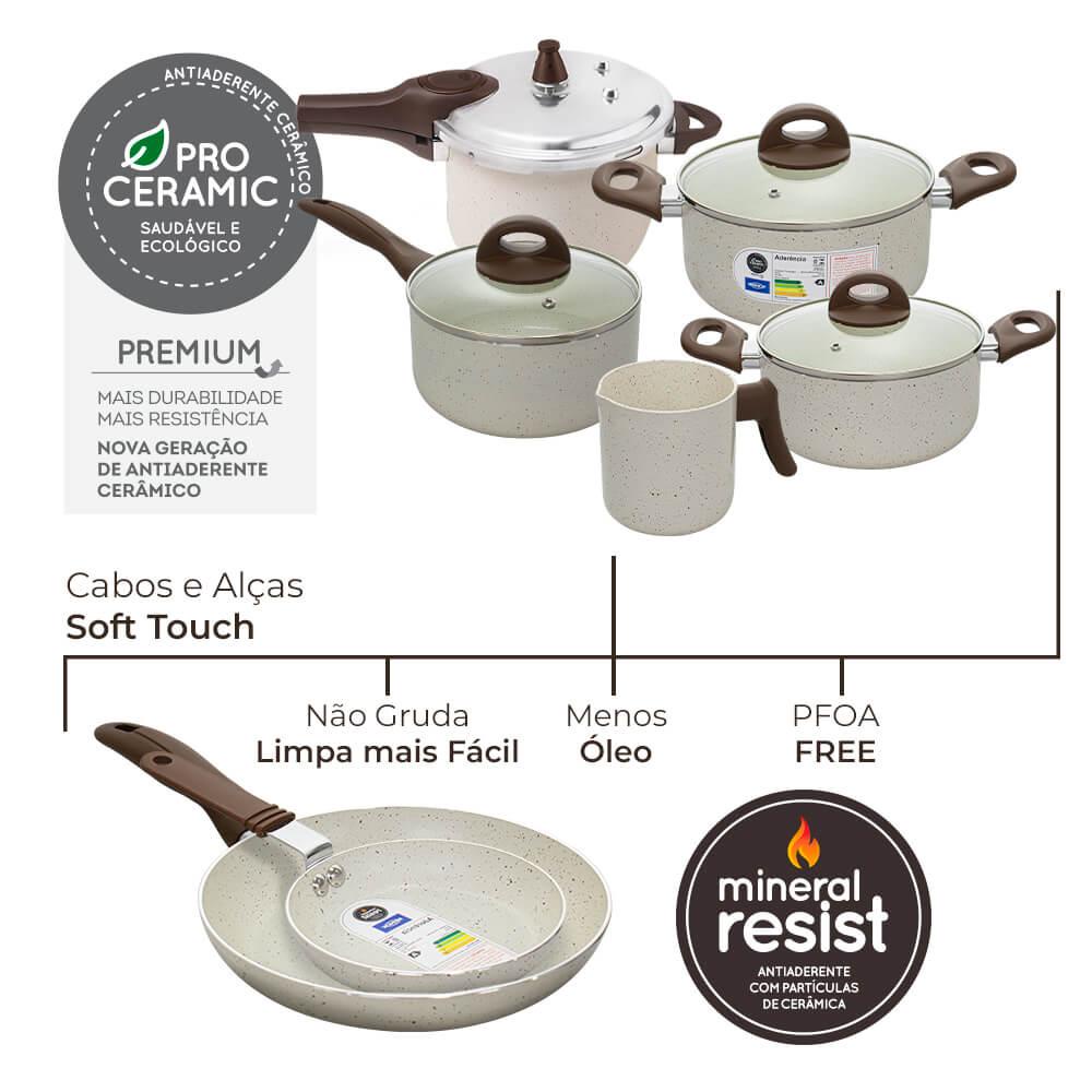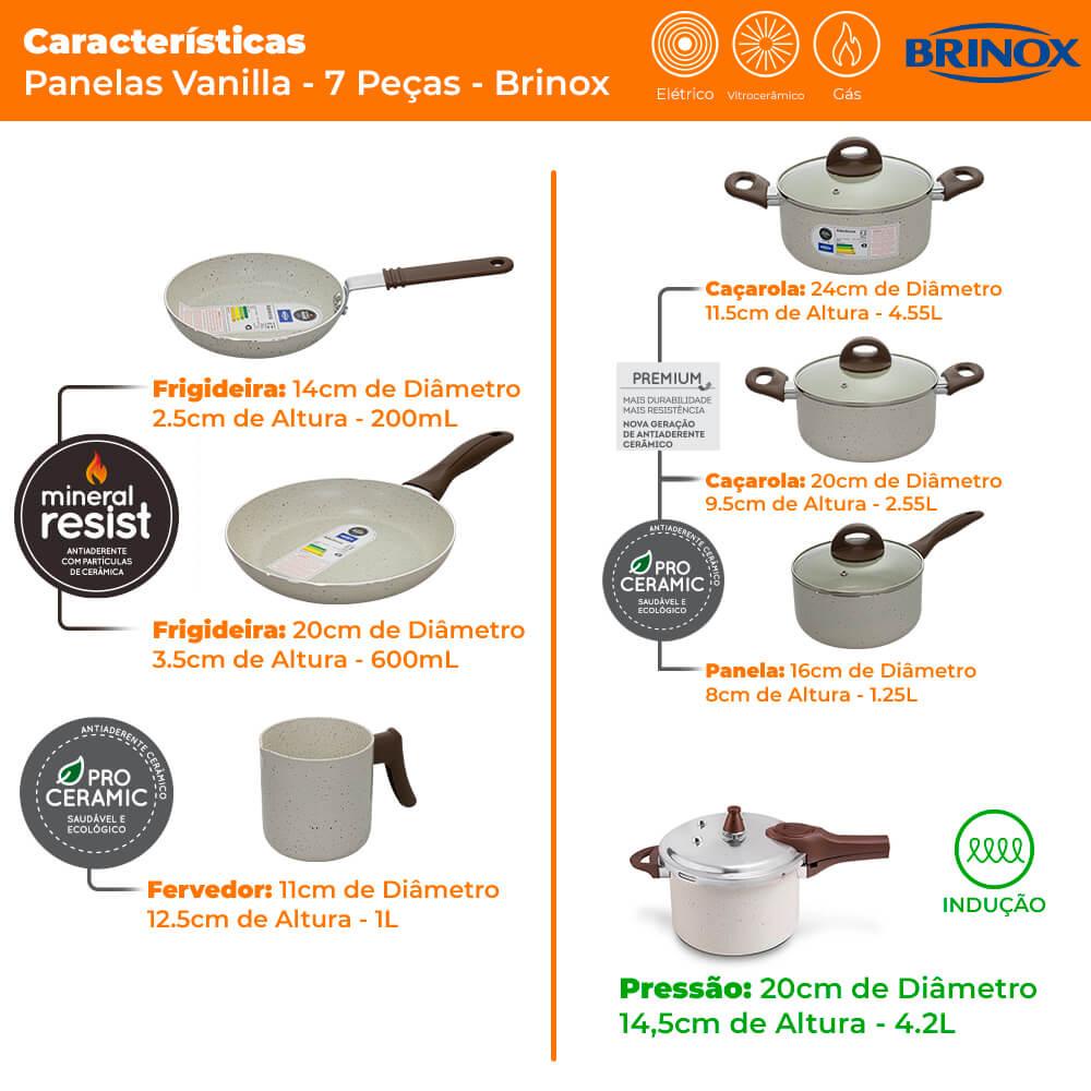 Jogo De Panelas Antiaderente Ceramic Life Smart Plus Vanilla 7 Peças - Brinox